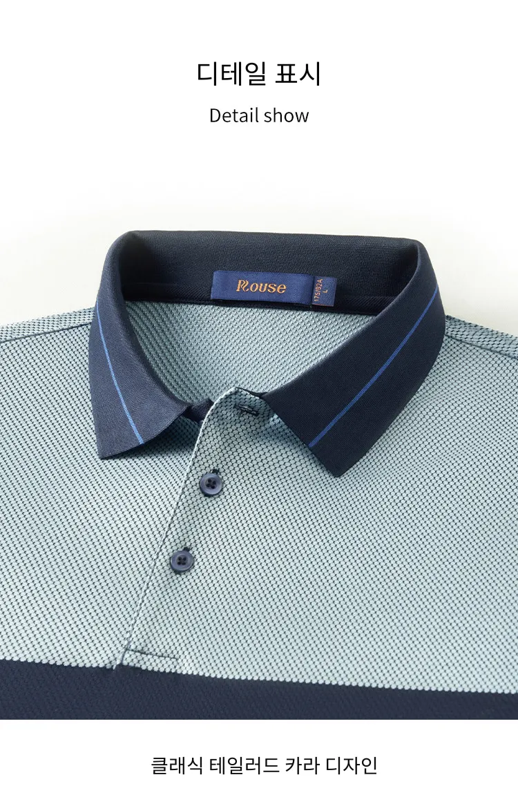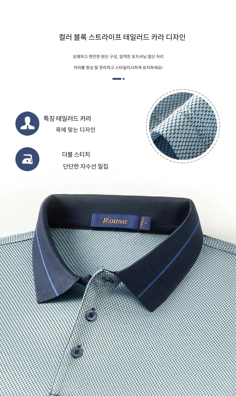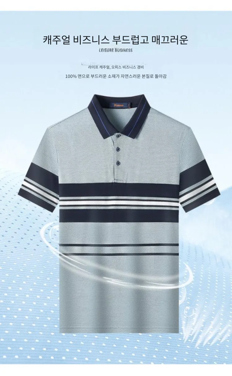 Loz 블루 스트라이프 패턴 남성 폴로 셔츠