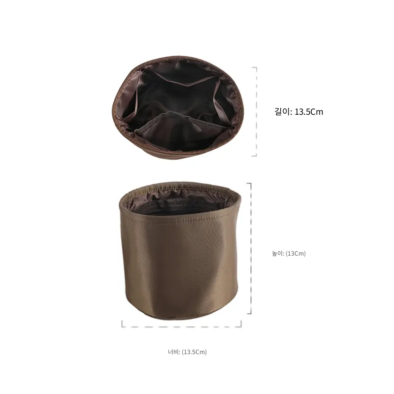 Luxury Care Artisan Workshop 나일론 가방 내피, 실린더 지지력, 수납 백, 레이어드 수납칸, 내부 포켓, 액세서리 가방, 스트랩 여성 브라운