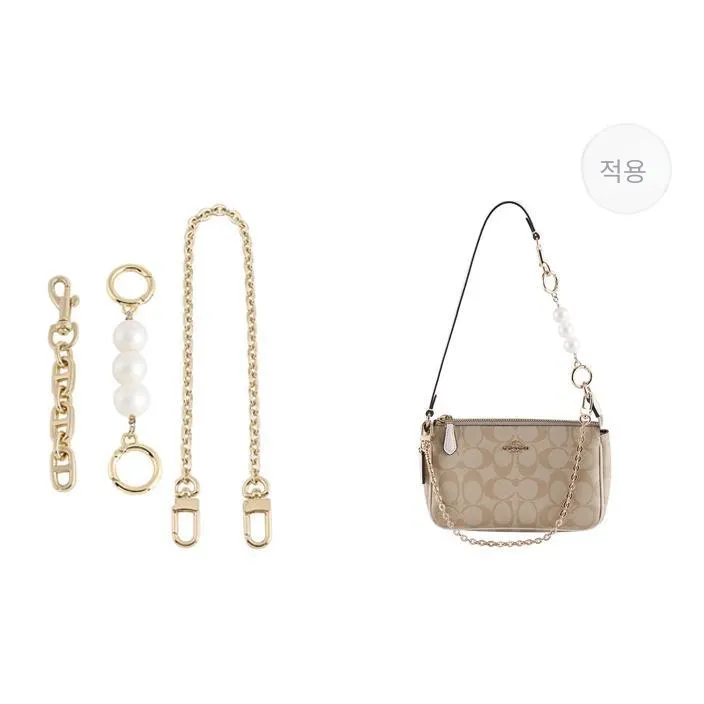 옵션:피그 노즈 체인 단면 버클 + 골드 톤 진주 + 장식 체인 40cm
