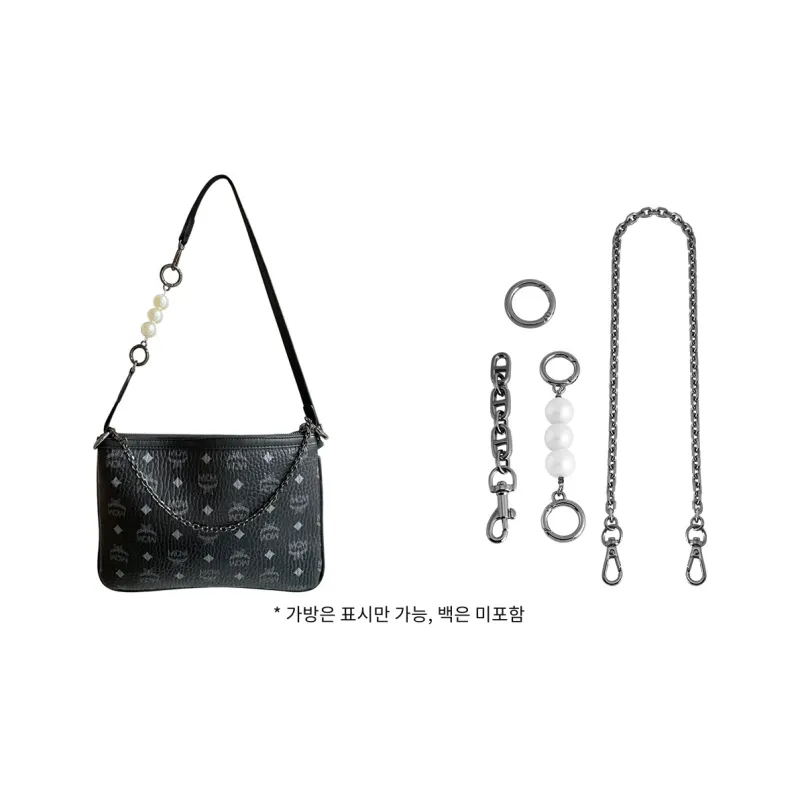 블랙 MCM Smaller 가방 겨드랑이 개조된 세트 (47cm 코퍼 체인+진주+피그 노즈)