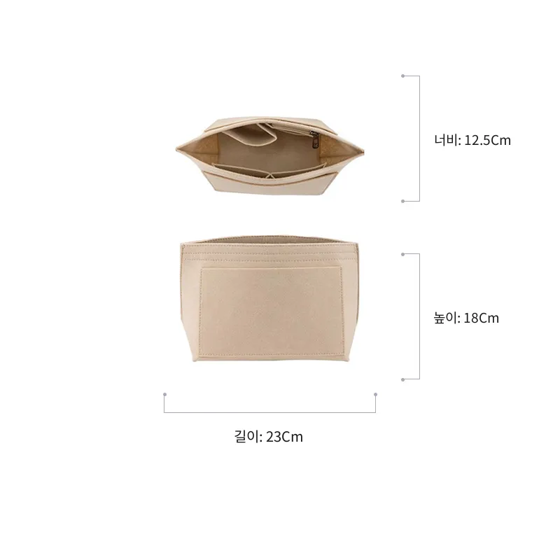 베이지 롱샴 펠트 내피 - 소형 사이즈 [3D 효과 스테이핑· 깔끔한 수납]