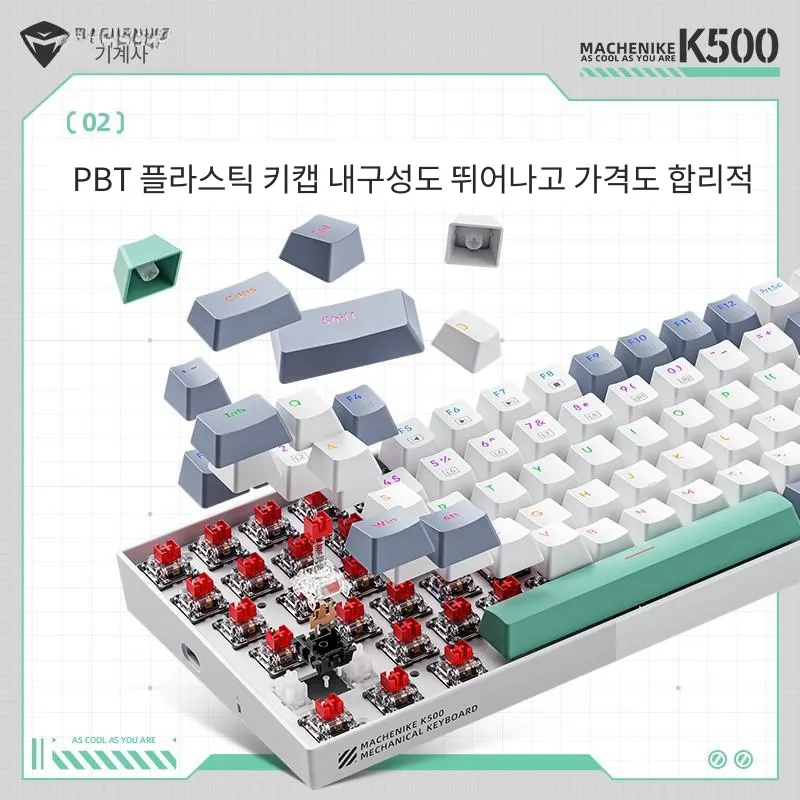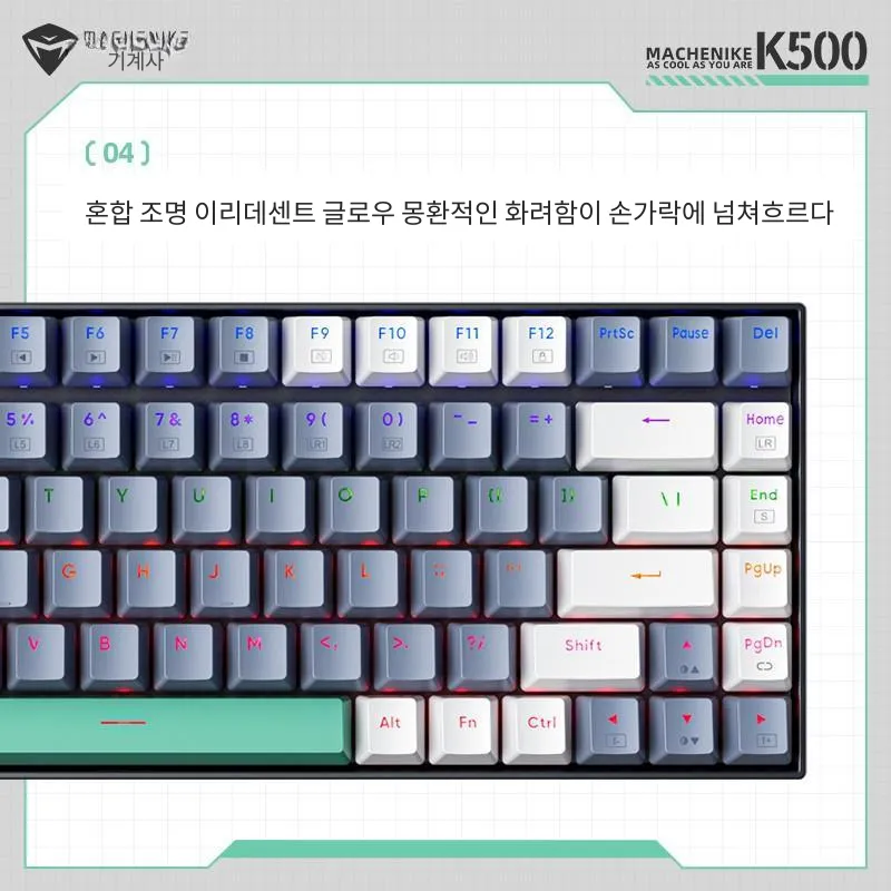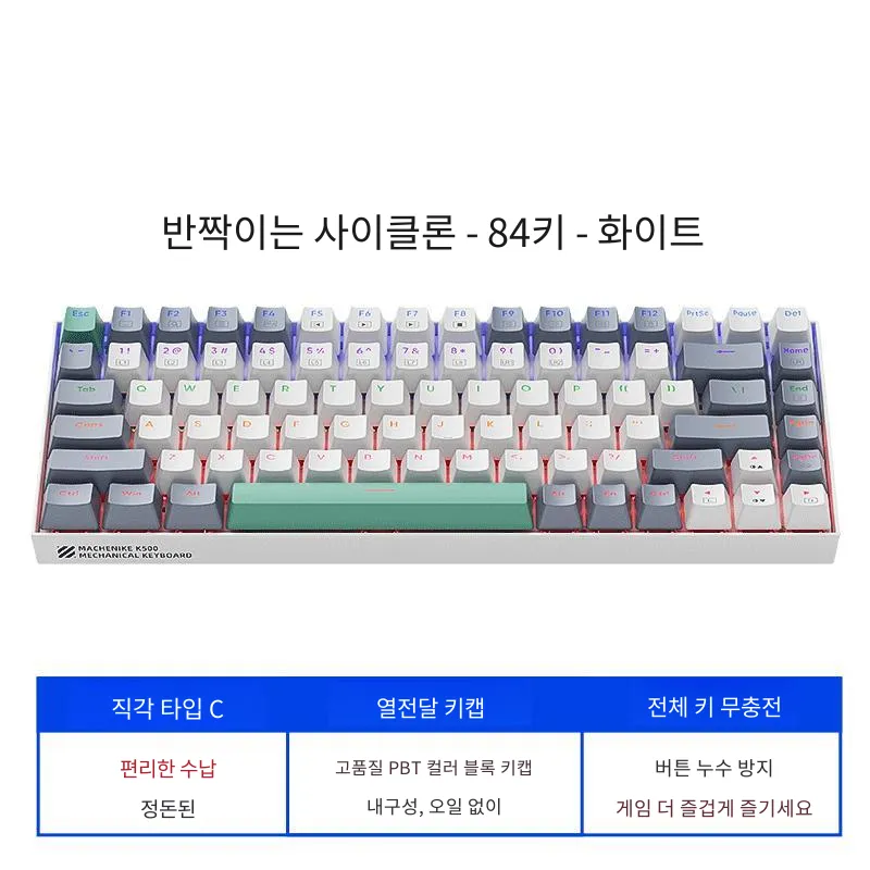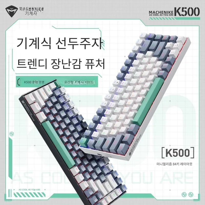 마첸리케 유선형 84 Keys 게이밍 레이아웃 PBT 키캡, 풀 키 안티 데본싱, E스포츠 오피스 혼합 조명 기계식 키보드 K500