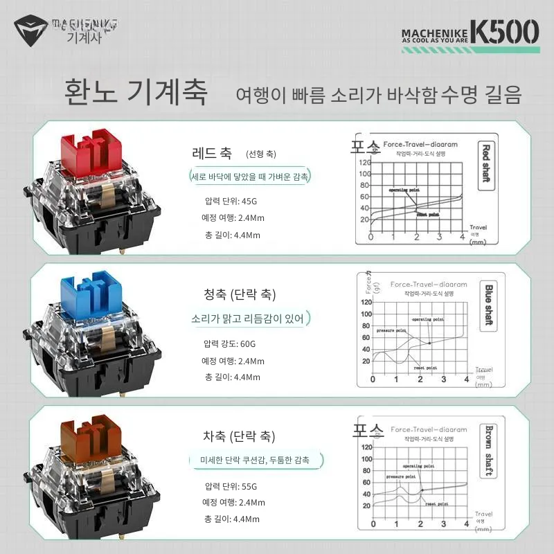 K500-B84 유선형, 브라운 스위치, 혼합 조명, 화이트