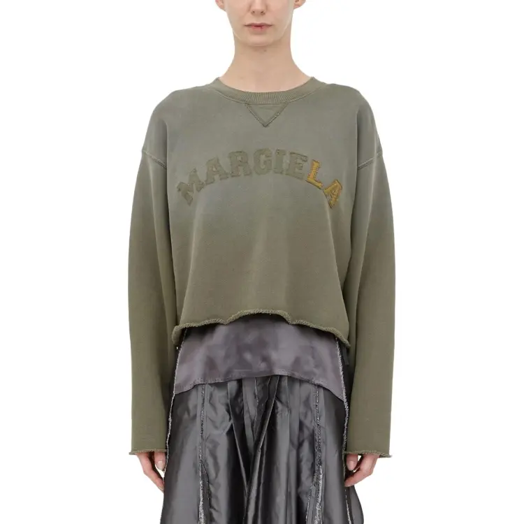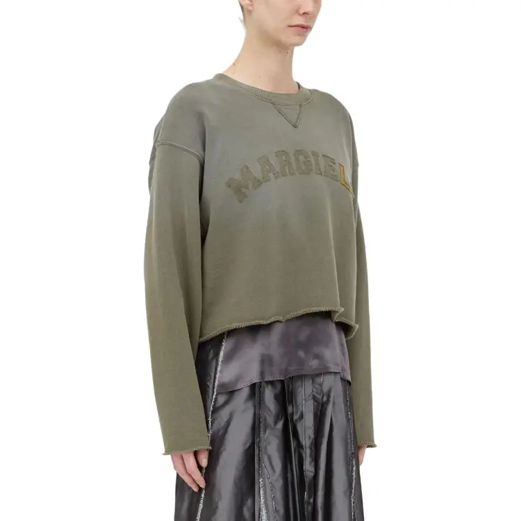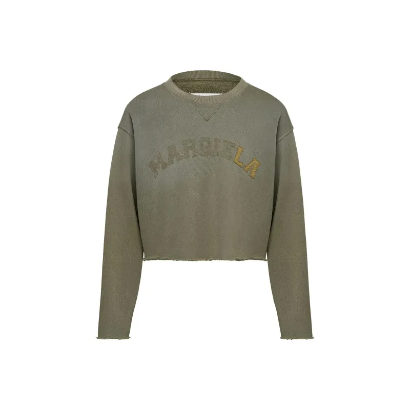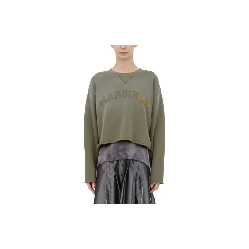 (W) 메종 마르지엘라 로고 빈티지 코튼 크롭 스웨트셔츠 올리브 - POIZON