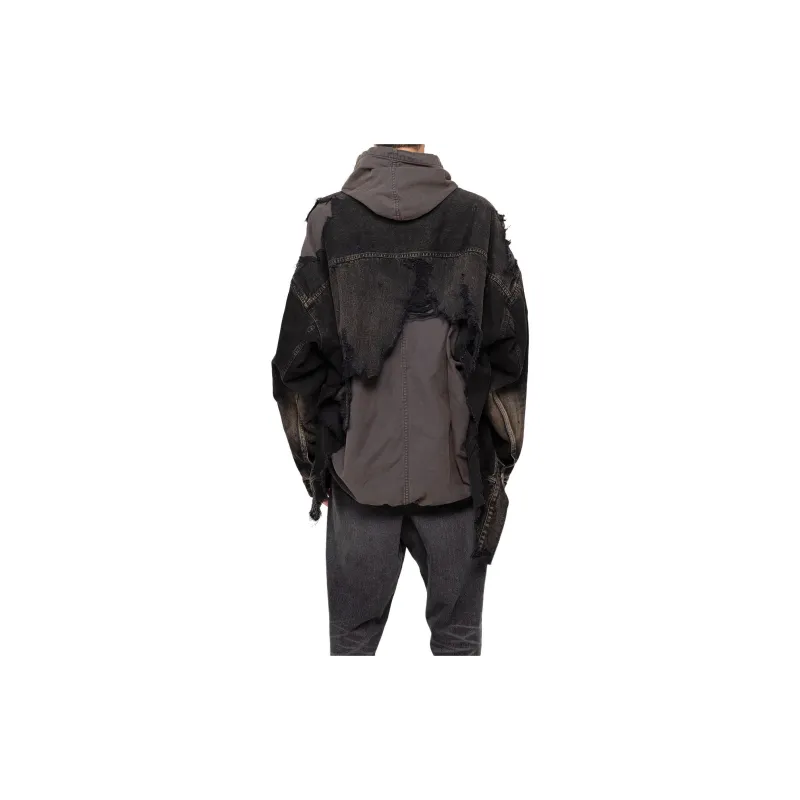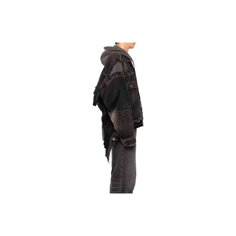 메종 미하라 야스히로 레이어드 데님 후드 자켓 블랙 - POIZON