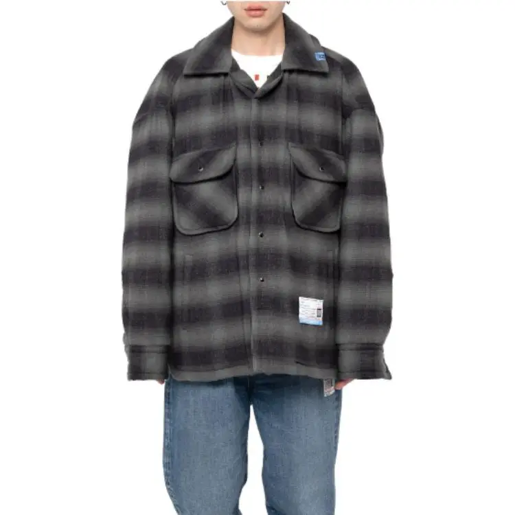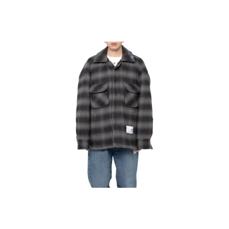 메종 미하라 야스히로 패디드 체크 셔츠 블랙 - POIZON