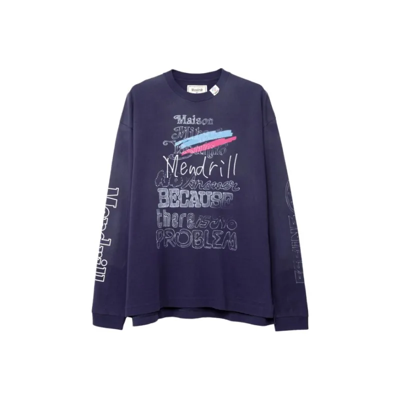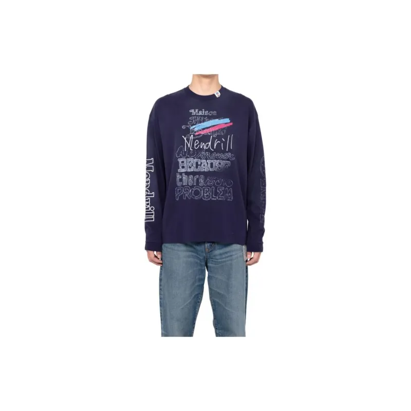 메종 미하라 야스히로 x 멘드릴 x 제너럴 스케일 디스트레스드 롱슬리브 티셔츠 네이비 - POIZON