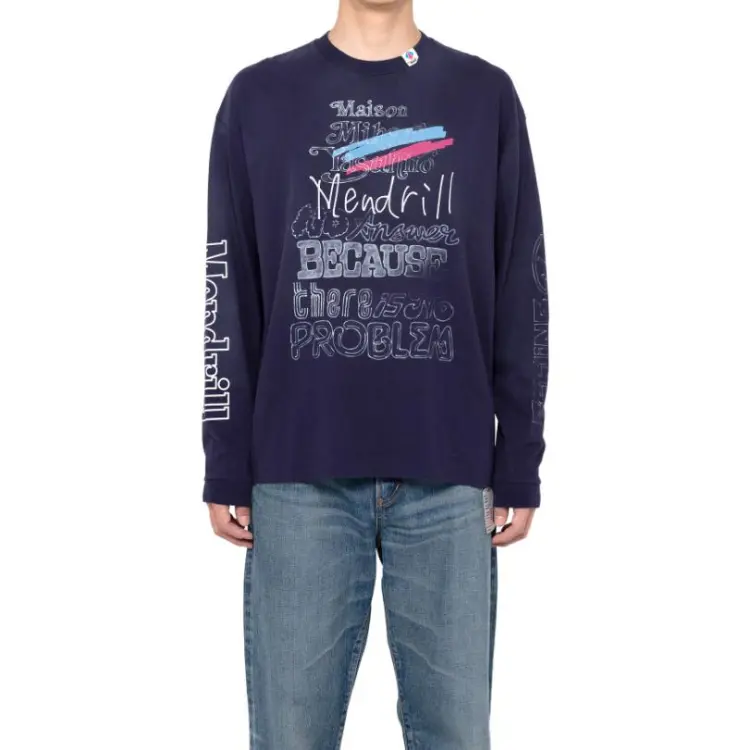 메종 미하라 야스히로 x 멘드릴 x 제너럴 스케일 디스트레스드 롱슬리브 티셔츠 네이비