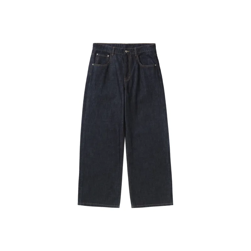 MAKEMOREKMR 다크 블루 남녀공용 청바지