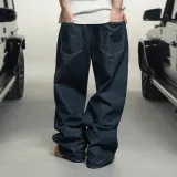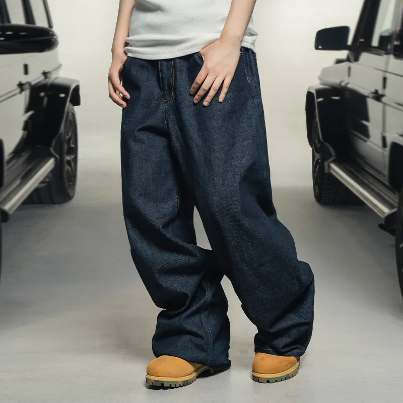 MAKEMOREKMR 다크 블루 남녀공용 청바지 - POIZON