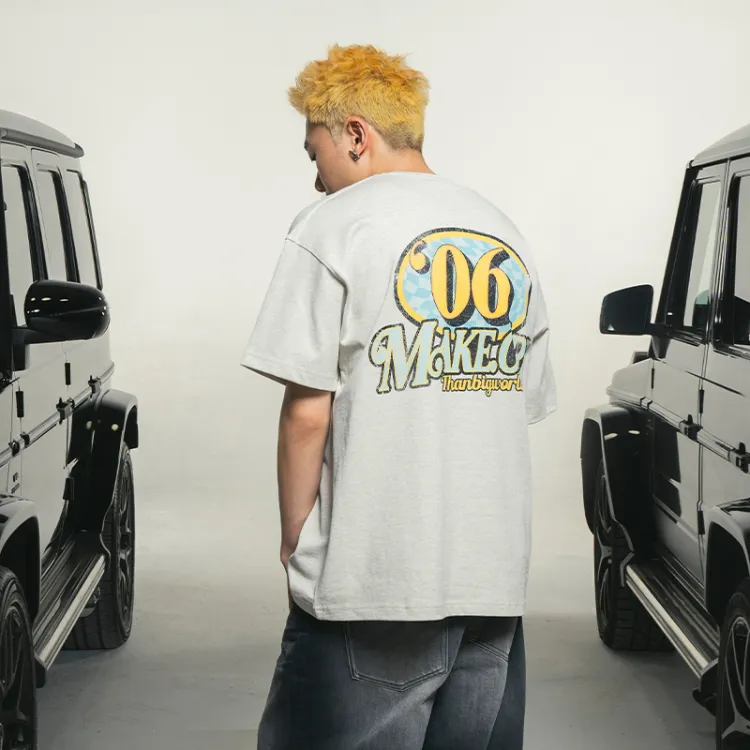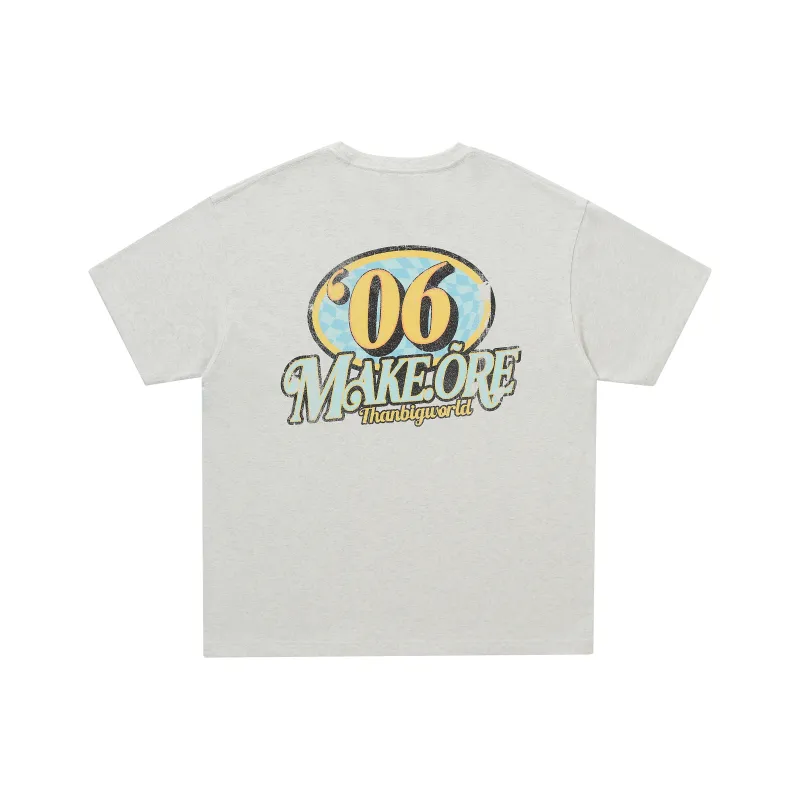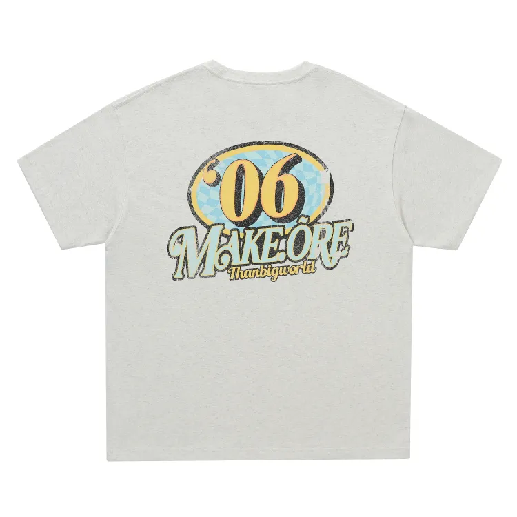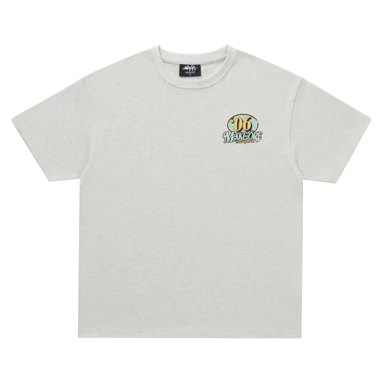 MAKEMOREKMR 플라워 그레이 남녀공용 티셔츠 - POIZON
