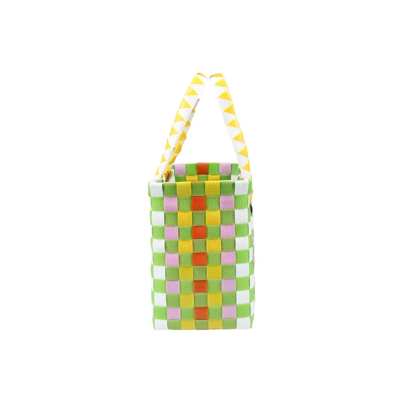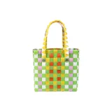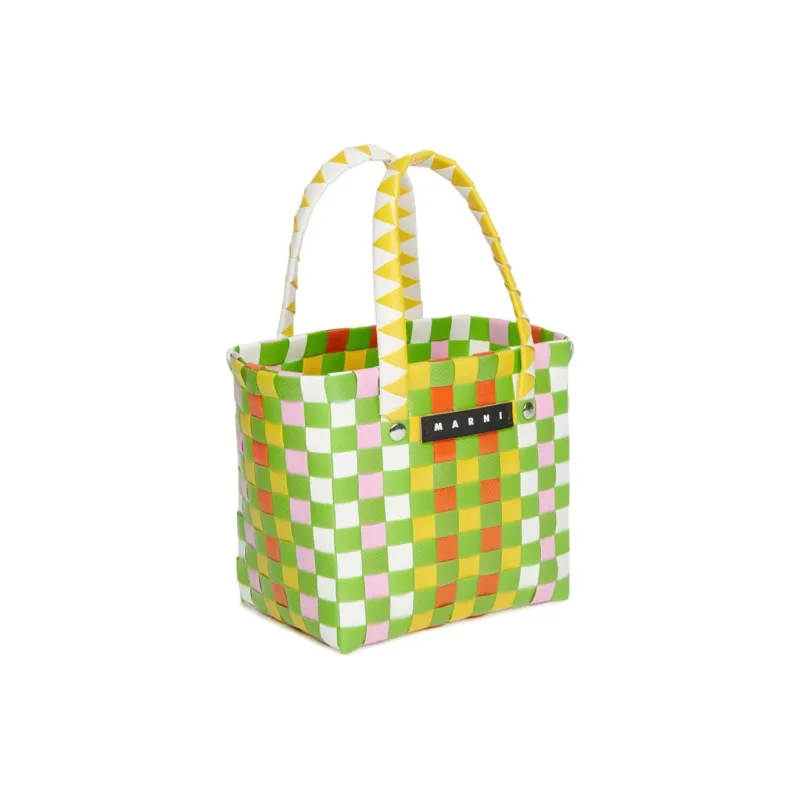 마르니 바스켓 시리즈 폴리프로필렌 및 소가죽 숄더백 핸드백 엑스트라 미니 아동 그린 & 옐로우 & 라이트 퍼플 - POIZON