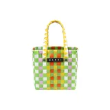 마르니 바스켓 시리즈 폴리프로필렌 및 소가죽 숄더백 핸드백 엑스트라 미니 아동 그린 & 옐로우 & 라이트 퍼플