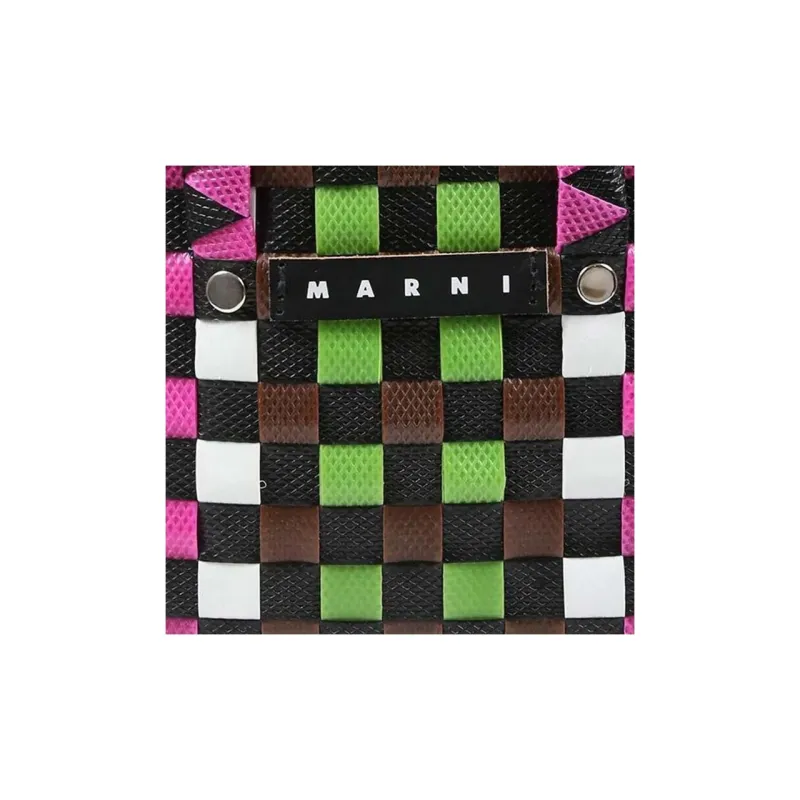 마르니 폴리프로필렌 및 소가죽 숄더백 핸드백 엑스트라 미니 아동 그린 & 화이트 & 퍼플 레드 & 블랙