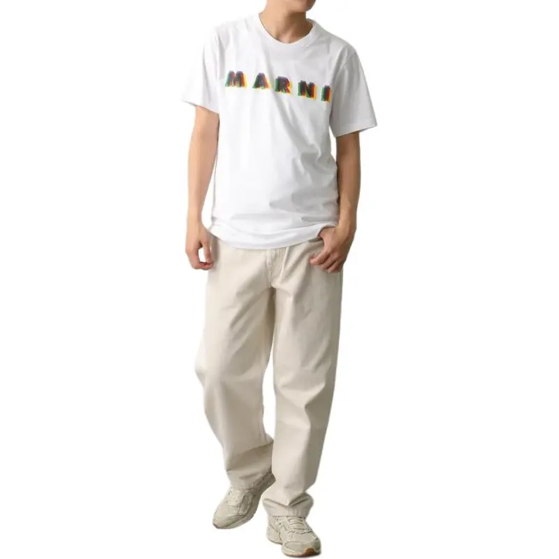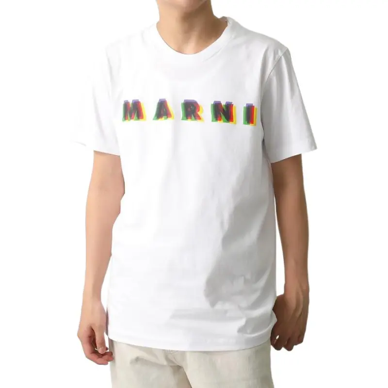 마르니 프린트 3D 컬러 오가닉 서티파이드 코튼 티셔츠 릴리 화이트 - POIZON