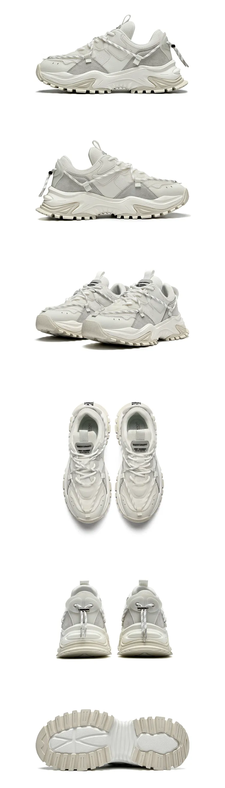 Masongarments 샤크 투스 추천 사이즈 2 쿠셔닝, 내마모성, 통기성 좋은, 가벼움, 키높이 로우탑 청키 스니커즈 남녀공용 빈티지 화이트