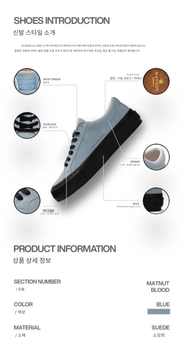 MATNUT 혈액 로우탑 스케이트보드 신발 남녀공용 블루