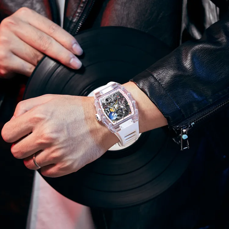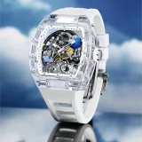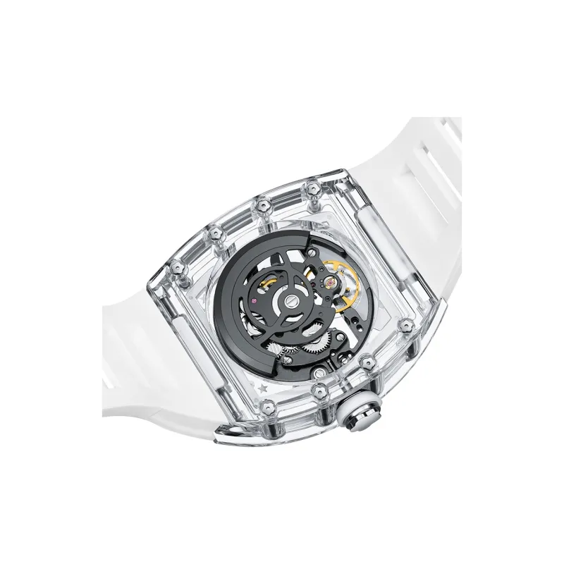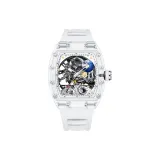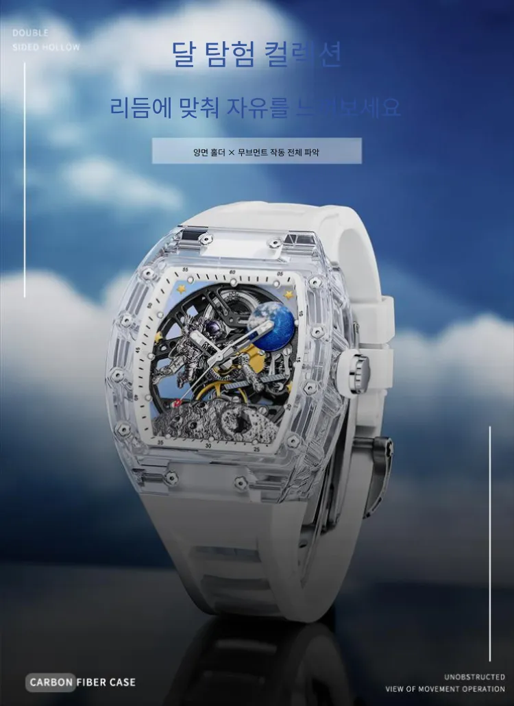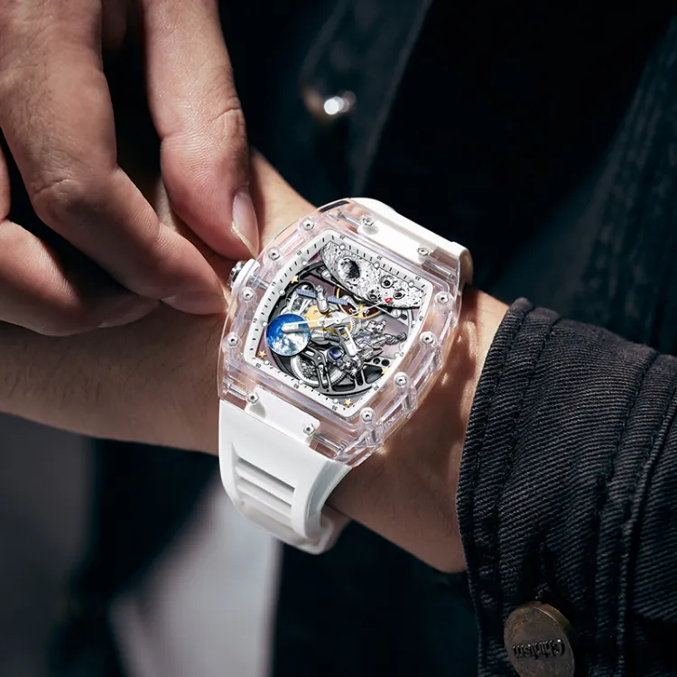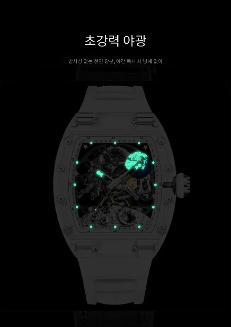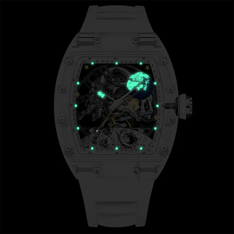 McElo 인피니트 유니버스 문 랜딩 오토매틱 메커니컬 무브먼트 고무 스트랩 중국 시계 남성용 시계 실버 다이얼