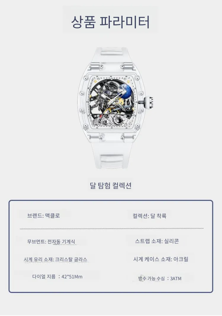 McElo 인피니트 유니버스 문 랜딩 오토매틱 메커니컬 무브먼트 고무 스트랩 중국 시계 남성용 시계 실버 다이얼 - POIZON