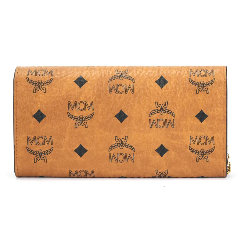 MCM 패트리샤 비세토스 인조 가죽 크로스바디백 지갑 L 여성 브라운 코냑