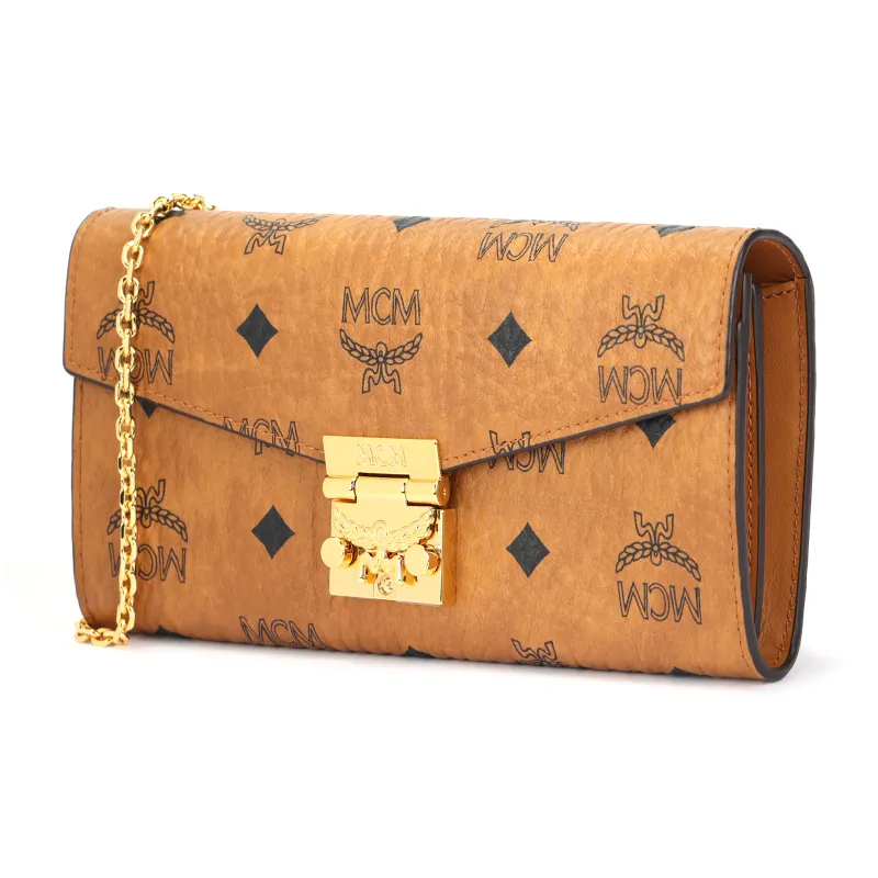 MCM 패트리샤 비세토스 인조 가죽 크로스바디백 지갑 L 여성 브라운 코냑 - POIZON