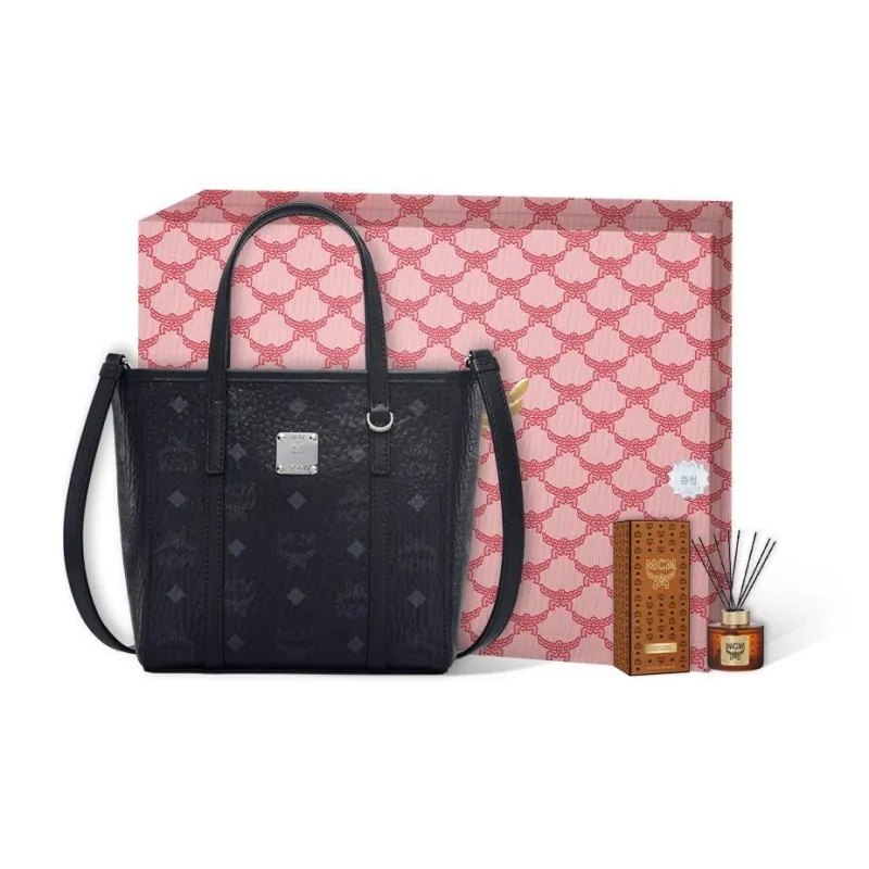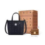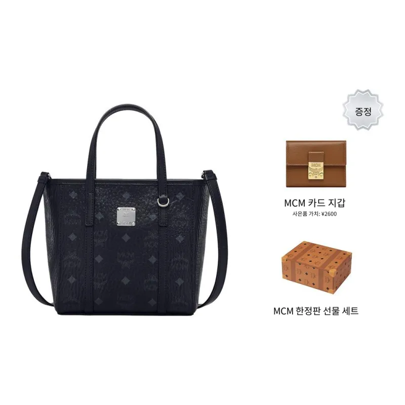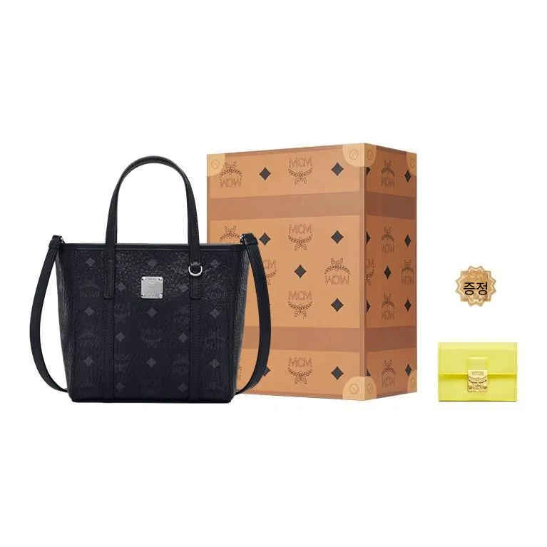 MCM 토니 비세토스 코팅 캔버스 및 나파 가죽 Tote Bag, Shopping Bag, Basket Bag, Crossbody Bag, One Shoulder Handbag 미니 여성 블랙