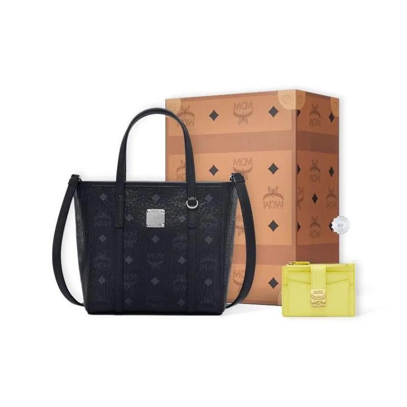 MCM 토니 비세토스 코팅 캔버스 및 나파 가죽 Tote Bag, Shopping Bag, Basket Bag, Crossbody Bag, One Shoulder Handbag 미니 여성 블랙 - POIZON