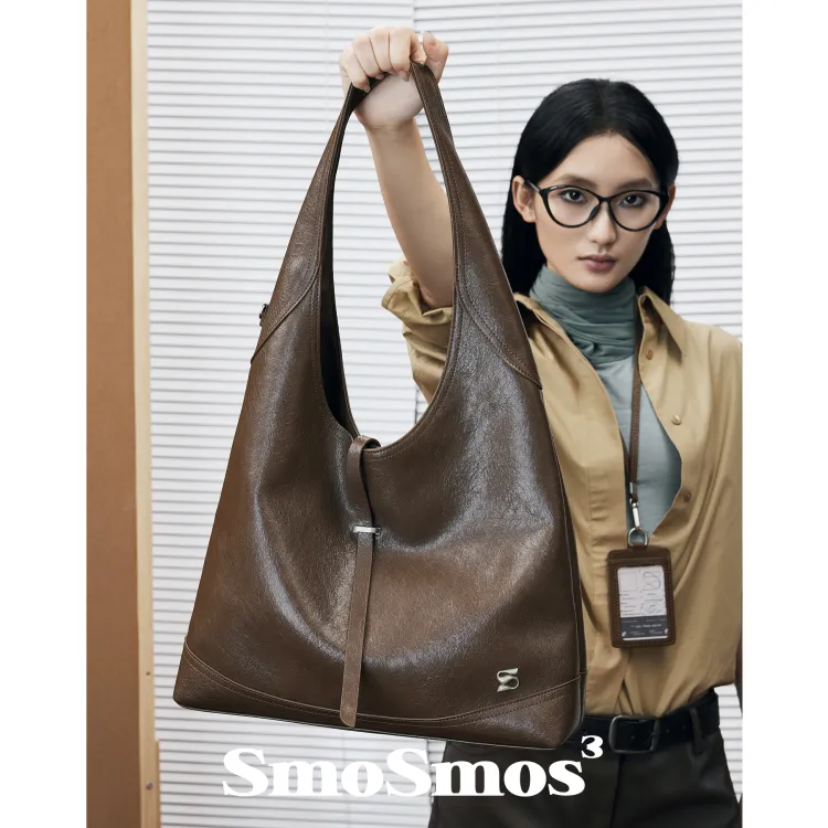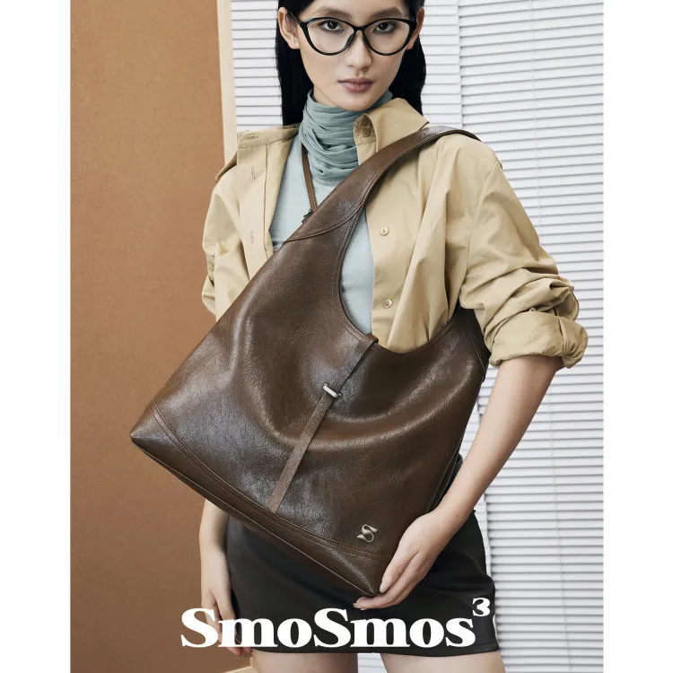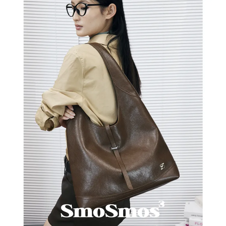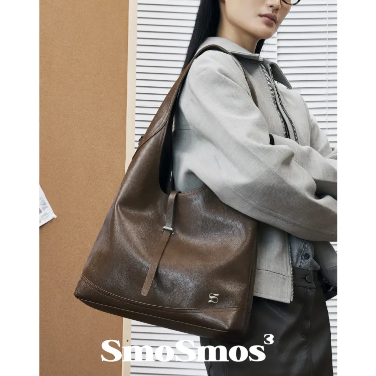 MCMIKO 인조 가죽 숄더 백 여성 라바 브라운/얇은 겉감 원단 그레이