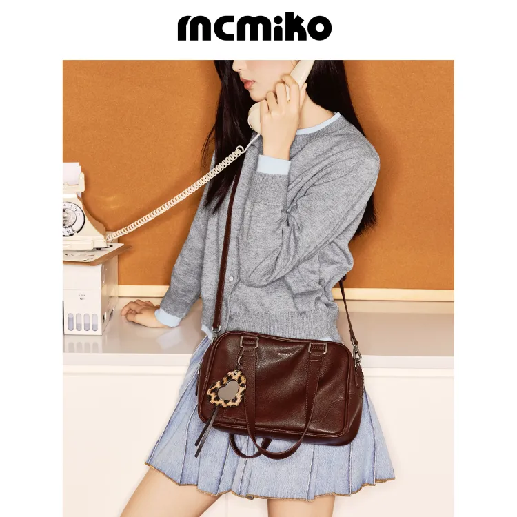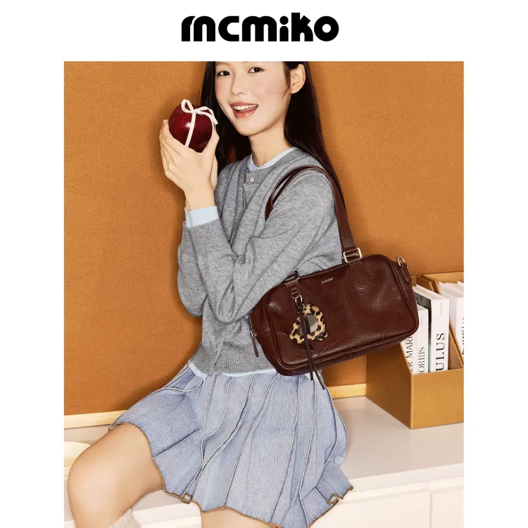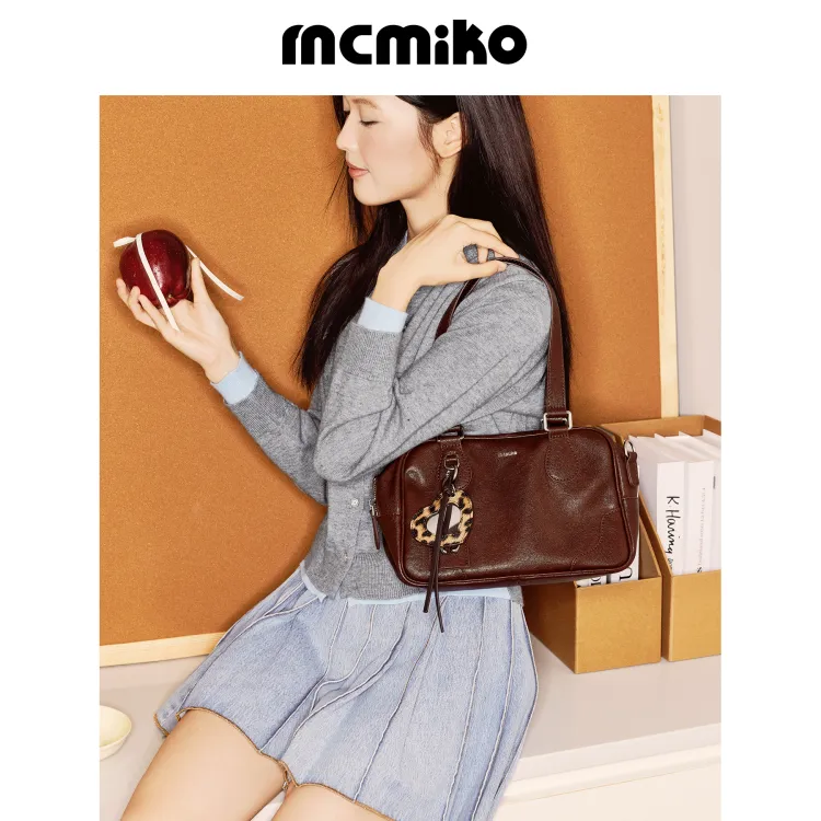 MCMIKO 소가죽 핸드백, 숄더 백, 크로스백 여성 체스트넛 브라운 레드 브라운 - POIZON