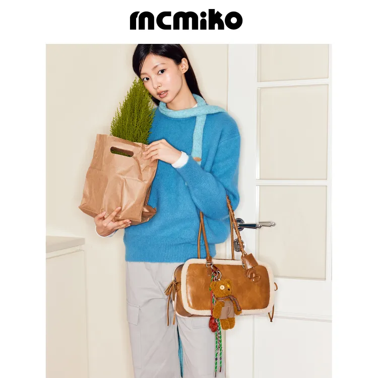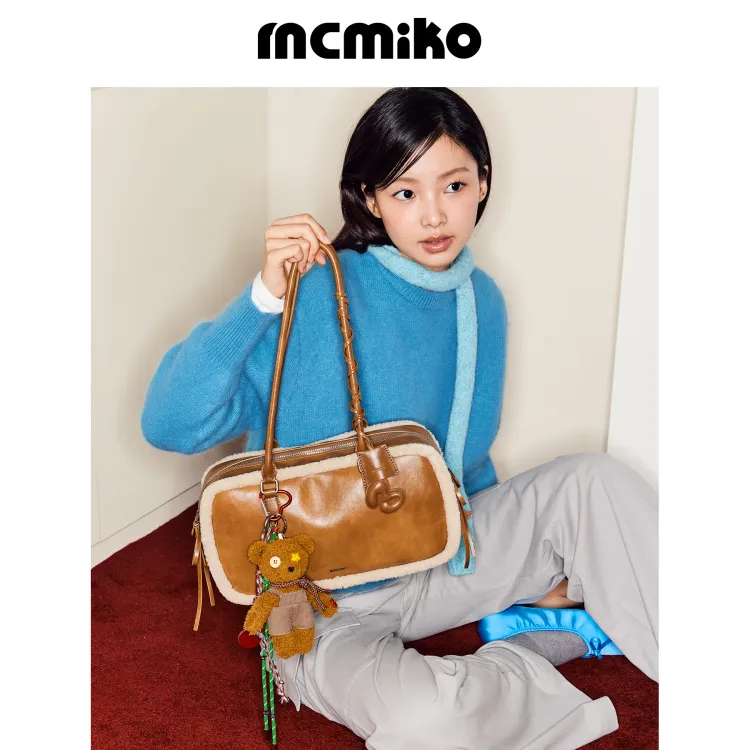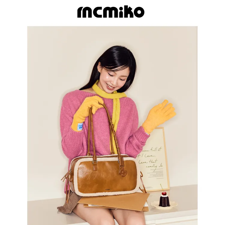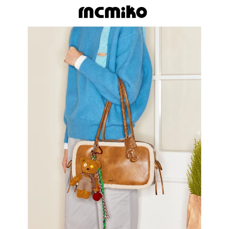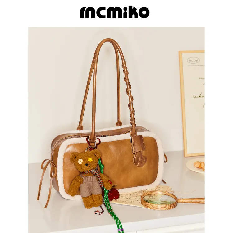 MCMIKO 소가죽 및 폴리우레탄 합성 가죽 볼링 백, 숄더 백 레귤러 여성 웜 브라운 - POIZON