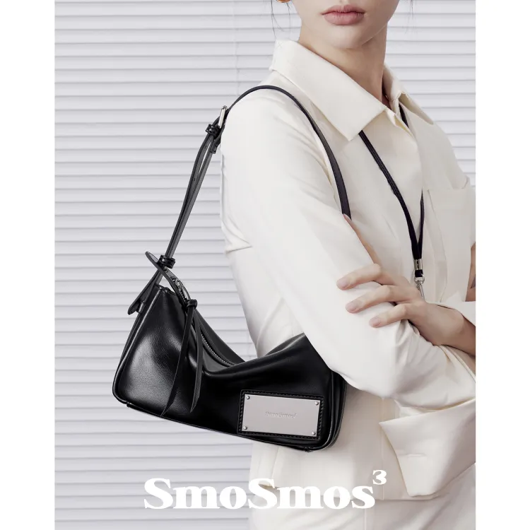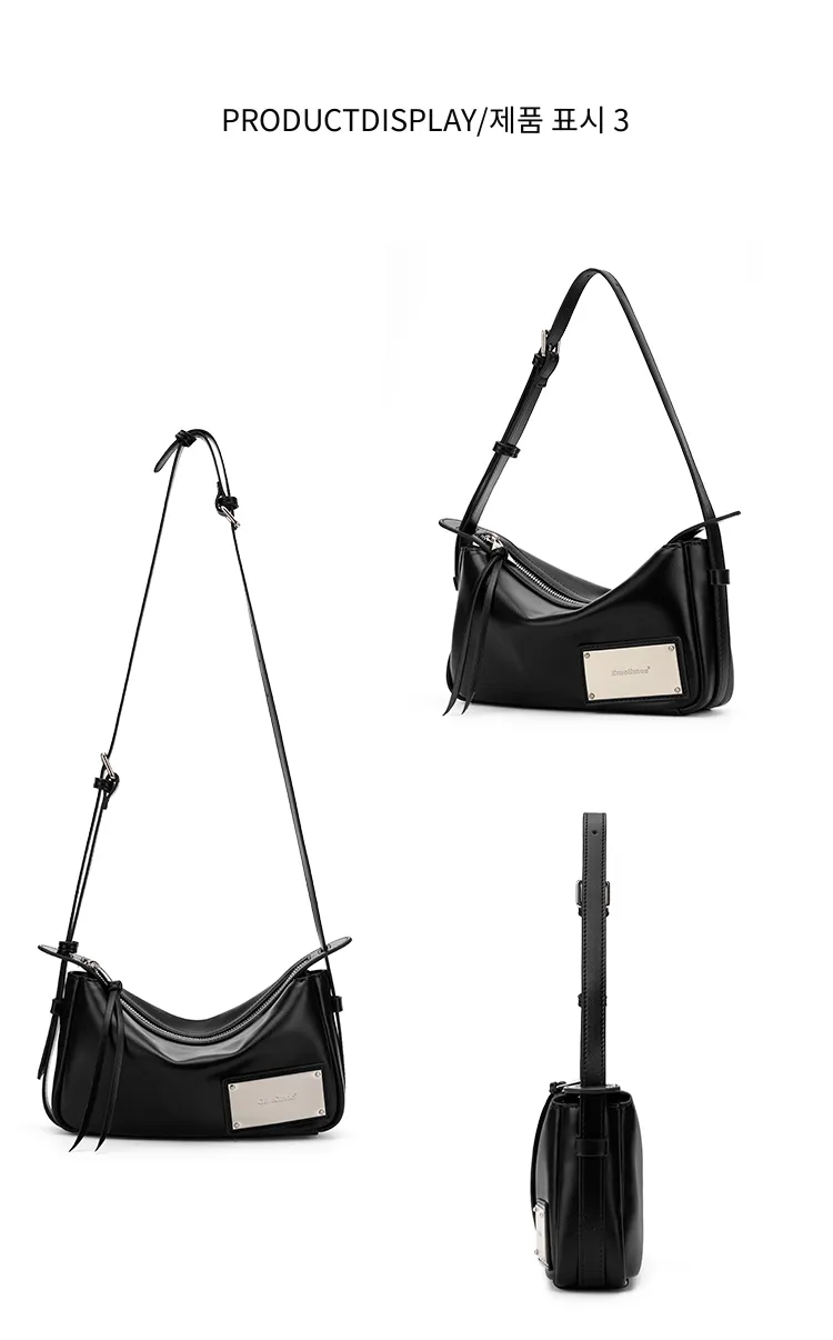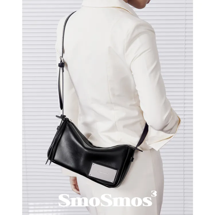 MCMIKO 소가죽 <브랜드_1> E 어깨 크로스백, 어깨 백 레귤러 여성 블랙