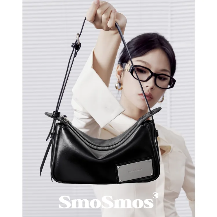 MCMIKO 소가죽 <브랜드_1> E 어깨 크로스백, 어깨 백 레귤러 여성 블랙 - POIZON