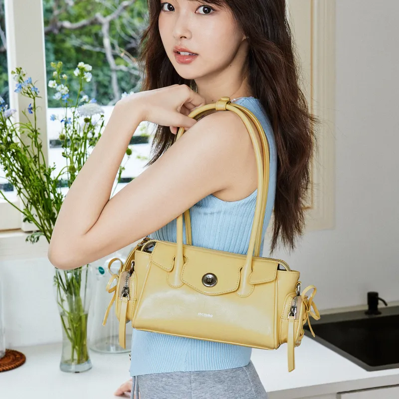MCMIKO 소가죽 <브랜드_1> E 어깨 크로스백 여성 치즈 옐로우 - POIZON