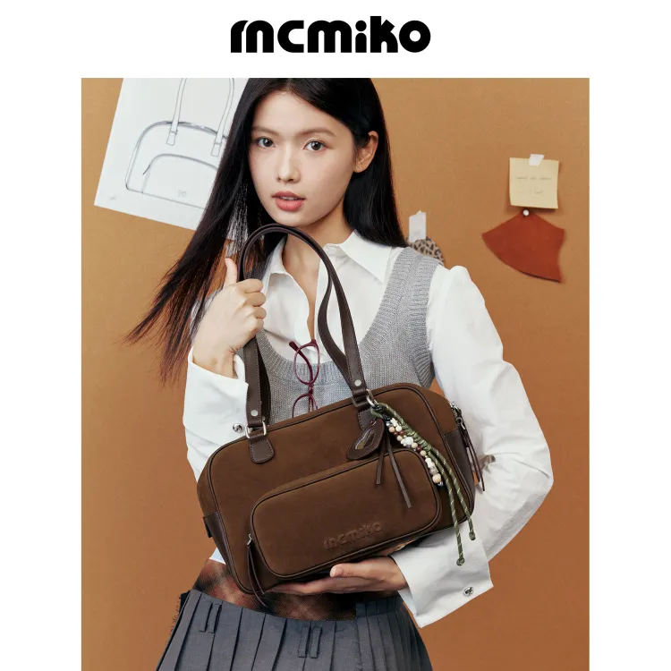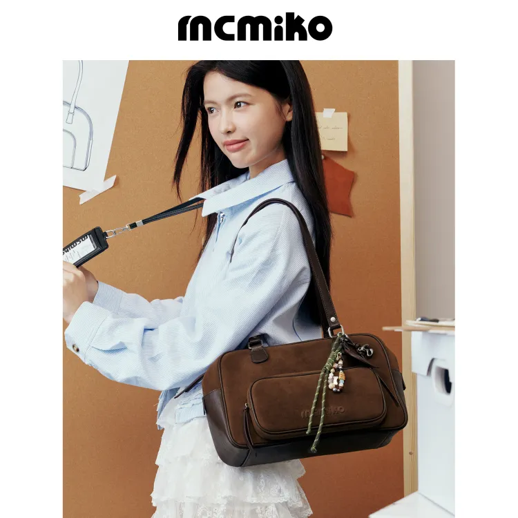 MCMIKO 소가죽 숄더백 M 여성 언밸런스 디자인 브라운 - POIZON