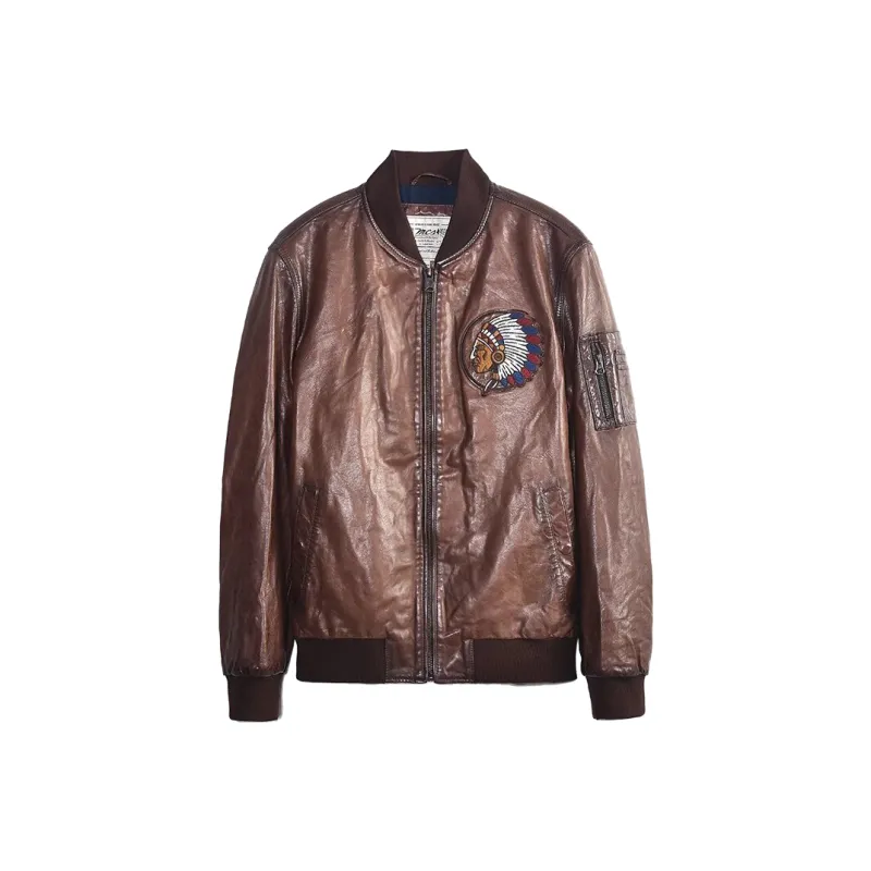 MCS 커피 남성 가죽 자켓 - POIZON