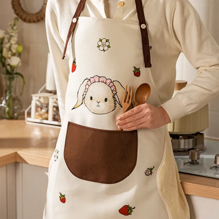 색상:헤라 토끼 앞치마 - 딸기 디자인