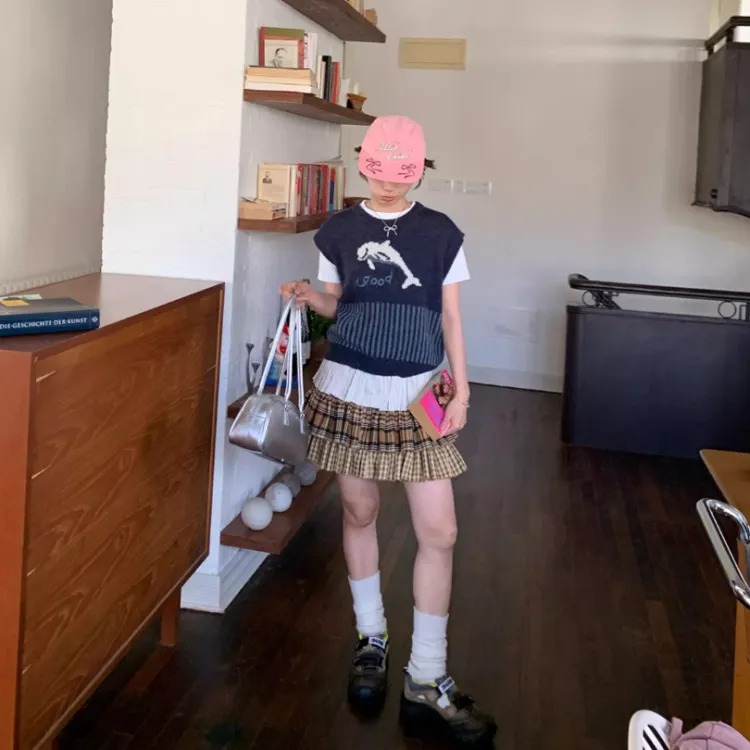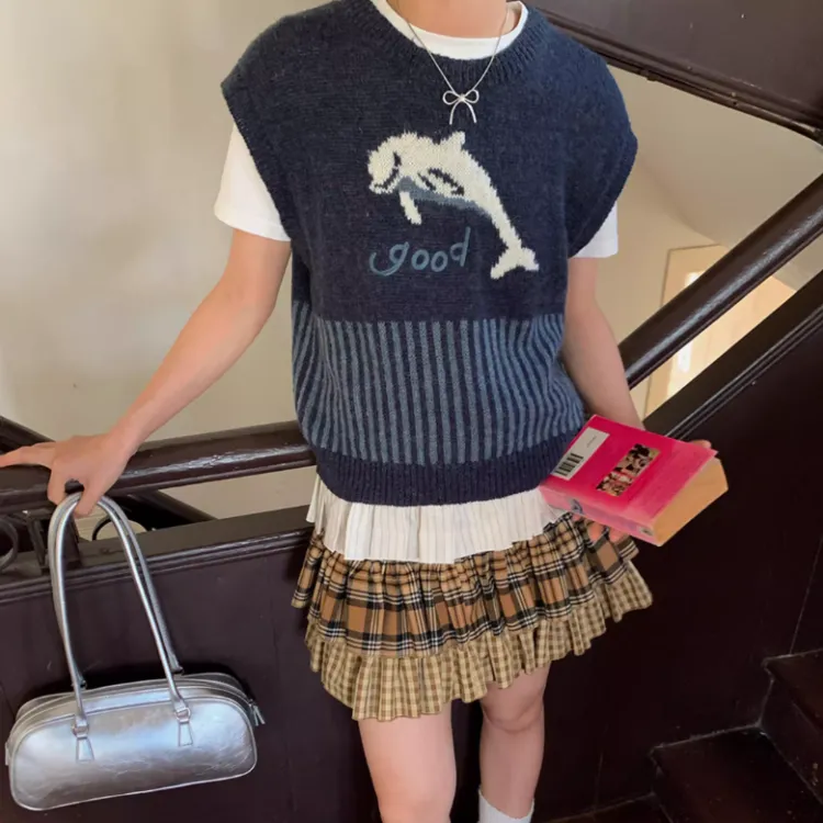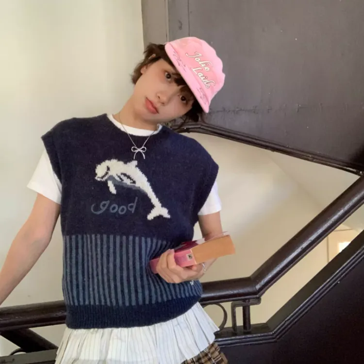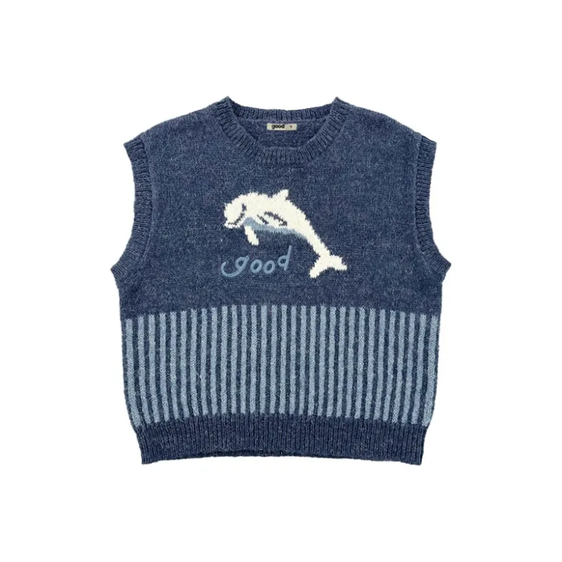 MeiHaoStore 네이비 블루 남녀공용 스웨터