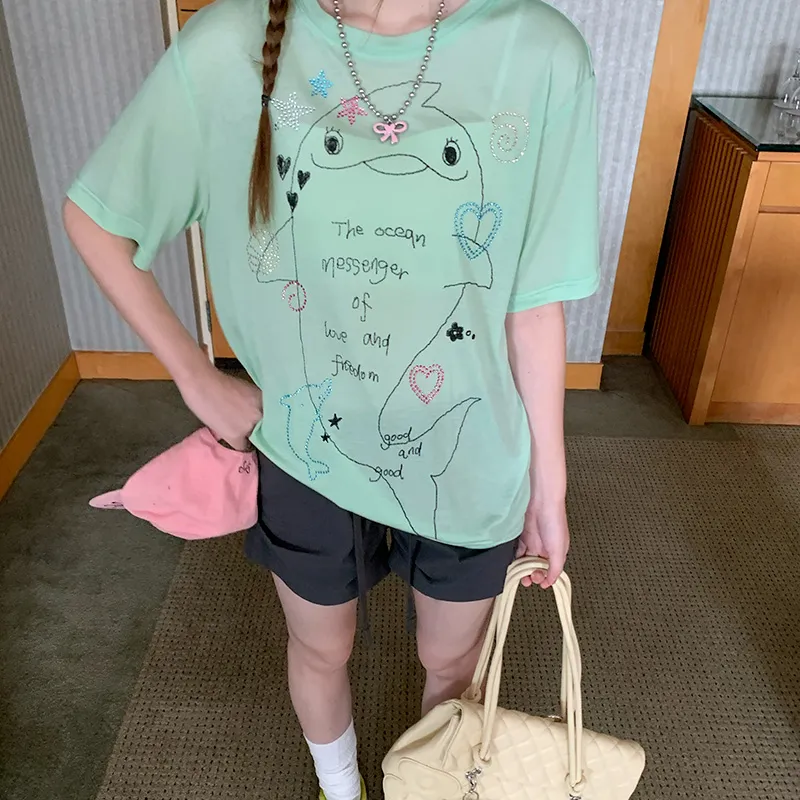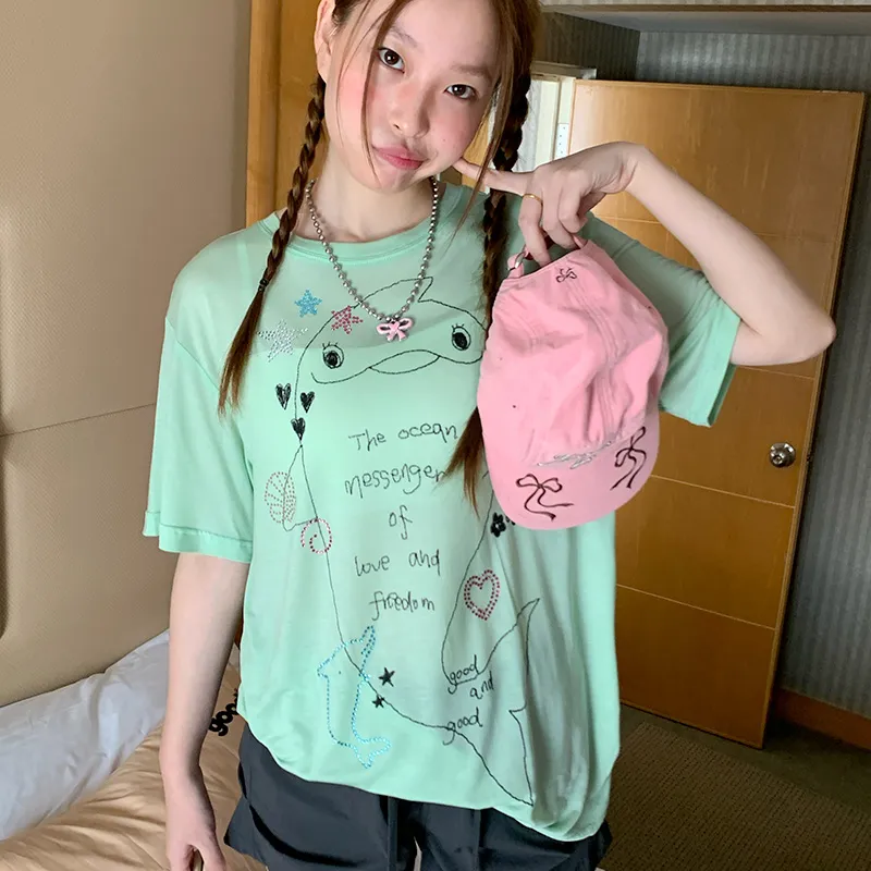 MeiHaoStore 그린 남녀공용 티셔츠 - POIZON