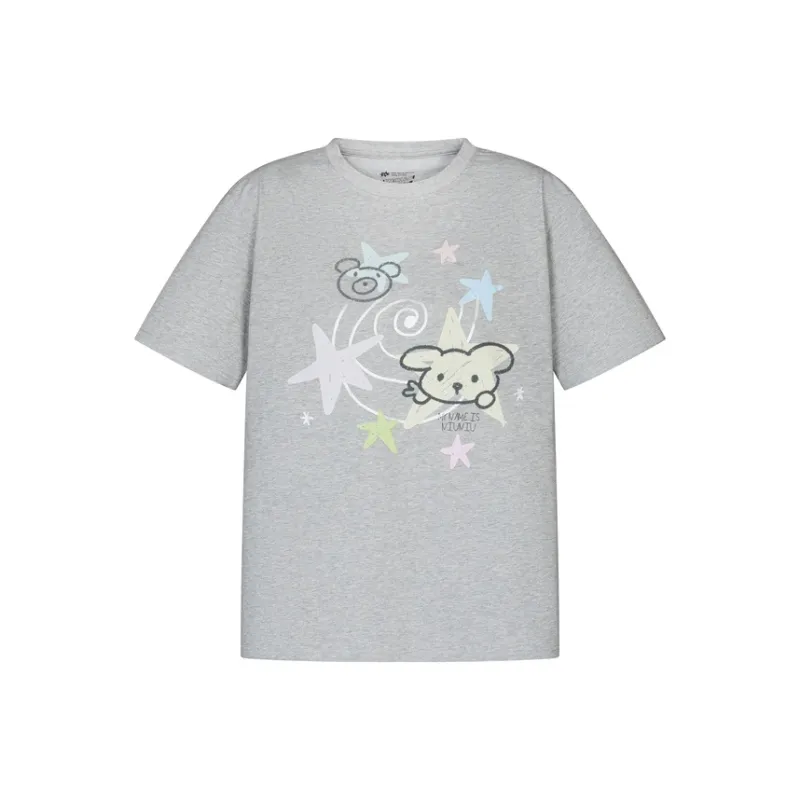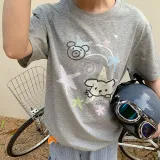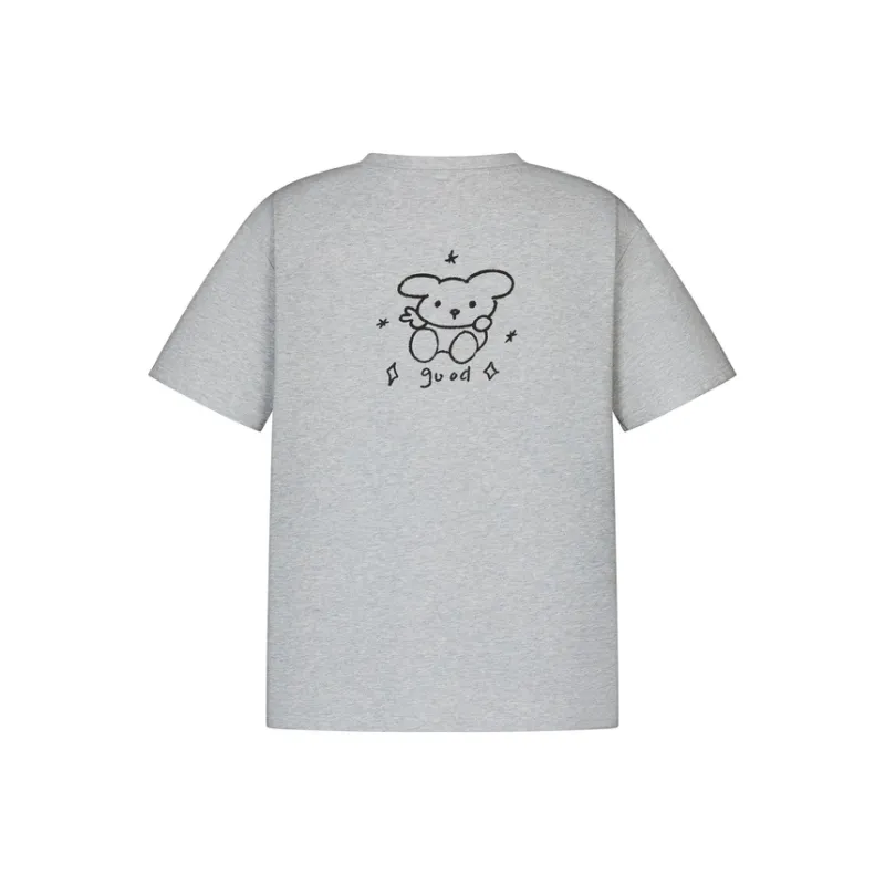MeiHaoStore 플라워 그레이 남녀공용 티셔츠 - POIZON