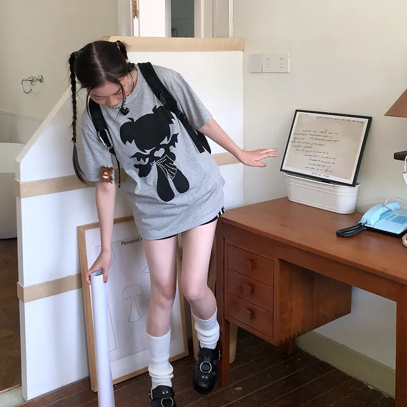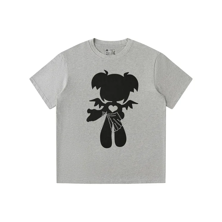 MeiHaoStore 플라워 그레이 남녀공용 티셔츠 - POIZON