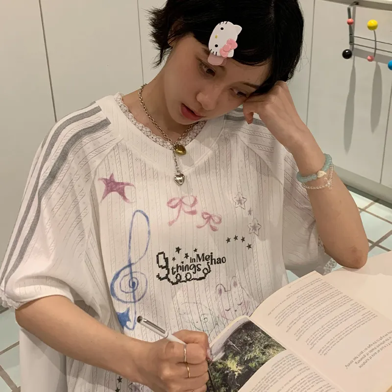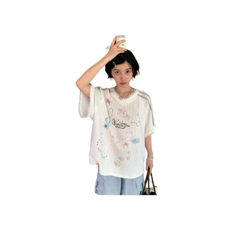 MeiHaoStore 화이트 남녀공용 티셔츠