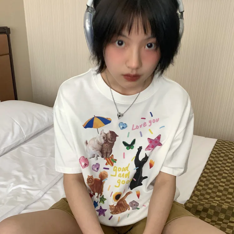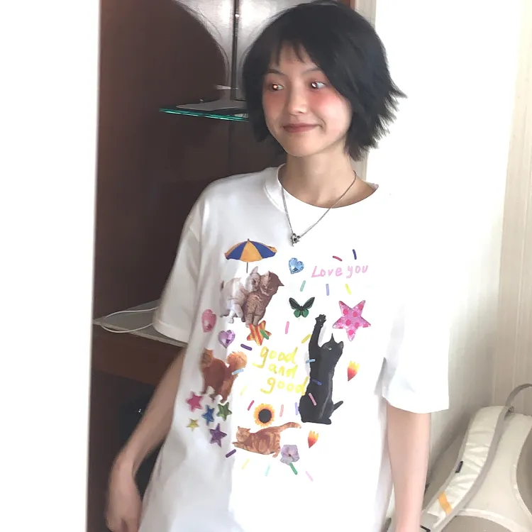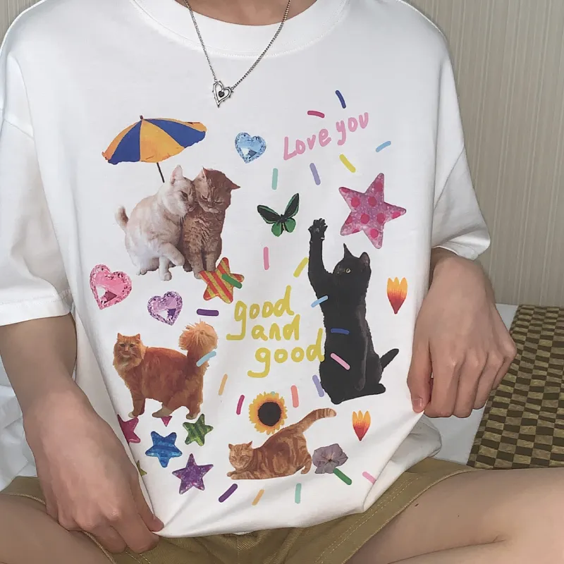 MeiHaoStore 화이트 남녀공용 티셔츠