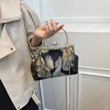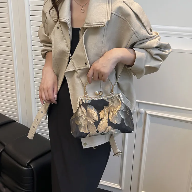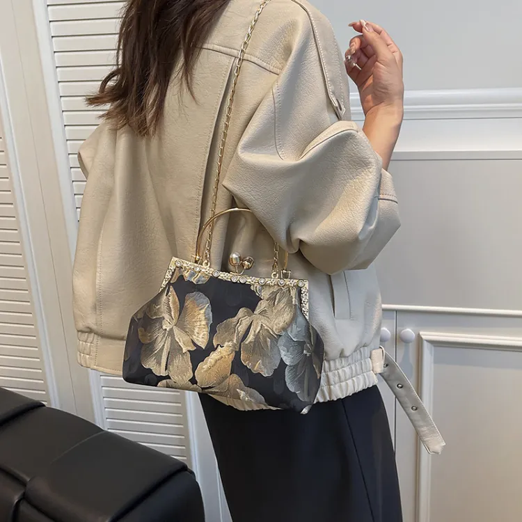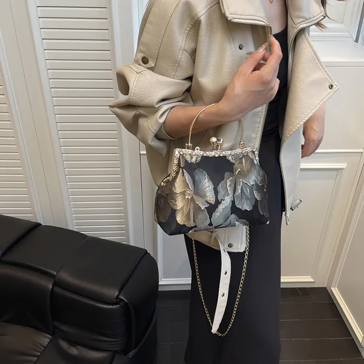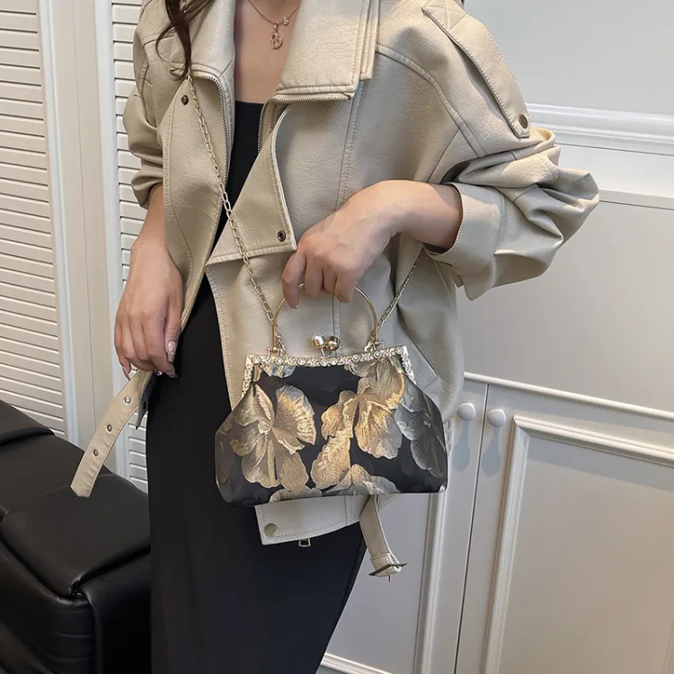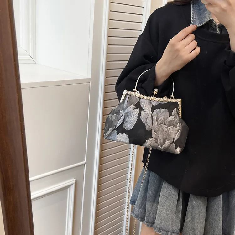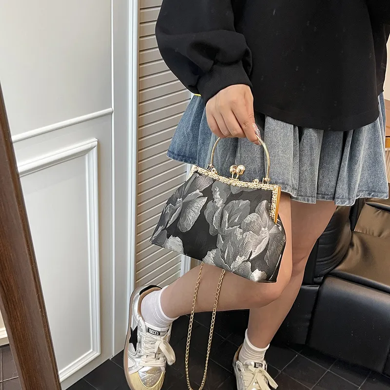 Meow in The Grass 원단 숄더백 핸드백 여성 실버/골드 - POIZON
