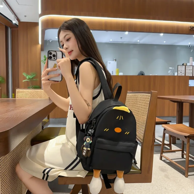 Meow in The Grass 나일론 백팩 레귤러 여성 블랙/핑크/화이트/블루/옐로우 - POIZON