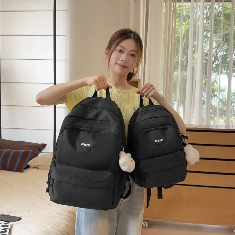 Meow in The Grass 나일론 백팩 남녀공용 블랙/화이트/옐로우 - POIZON