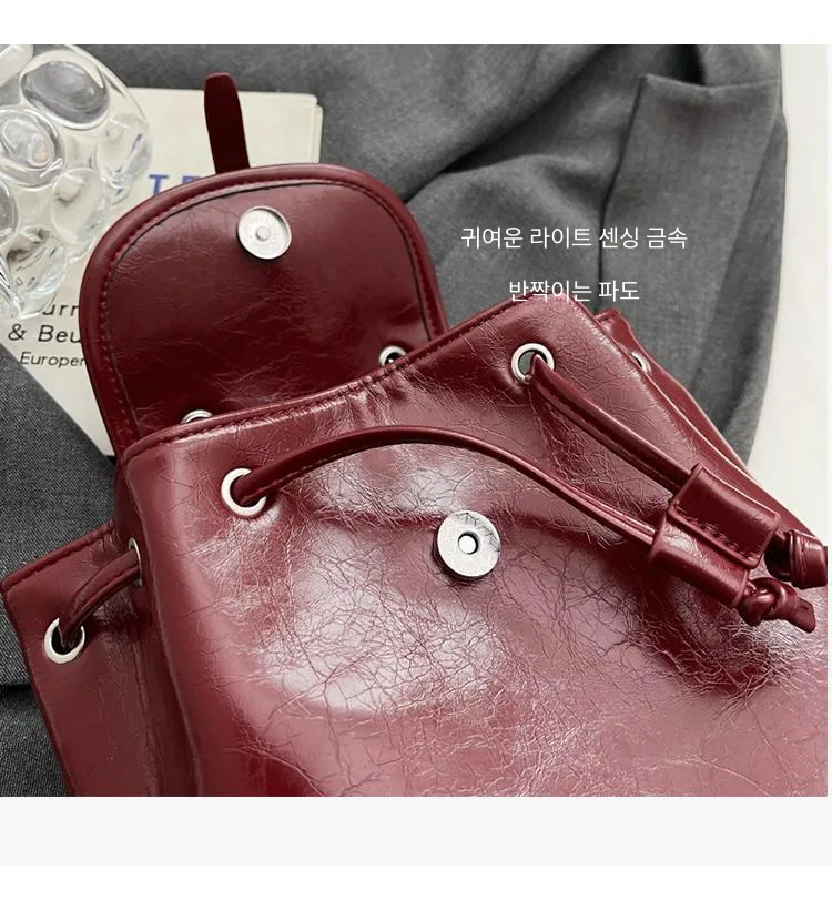 Meow In The Grass PU 백팩 레귤러 여성 블랙/실버/브라운/버건디