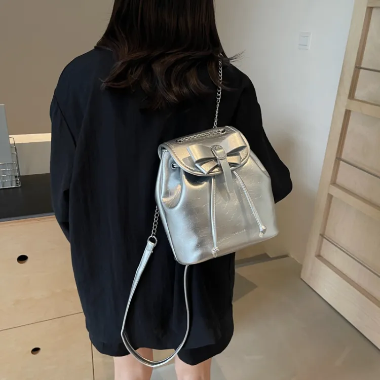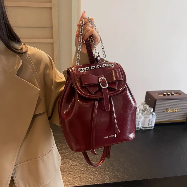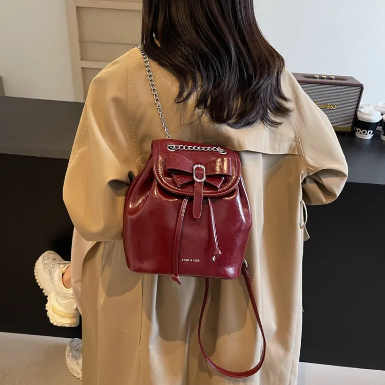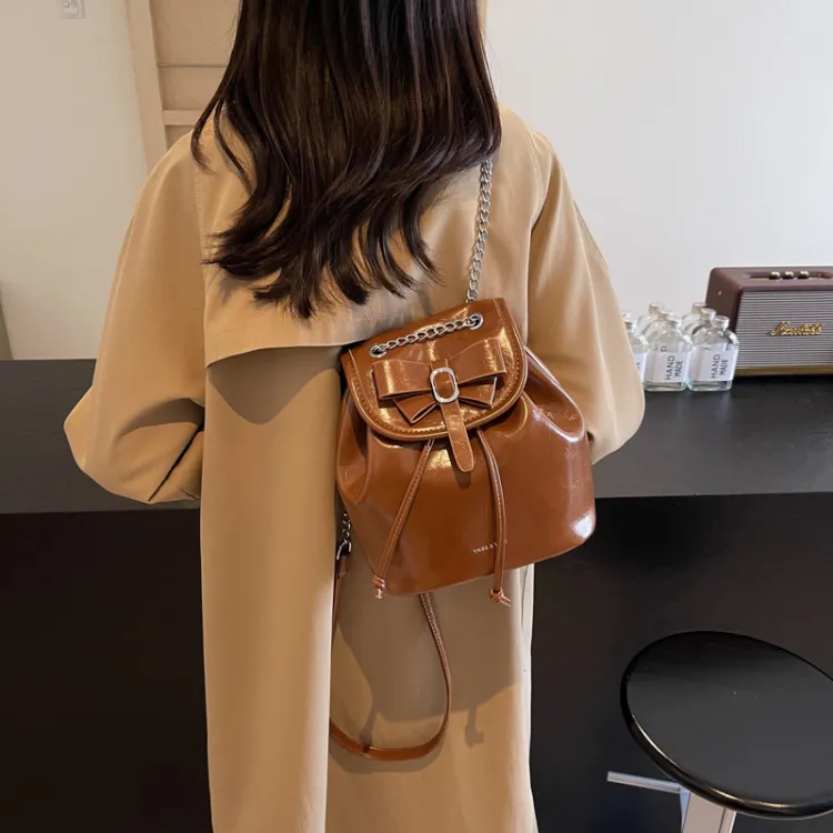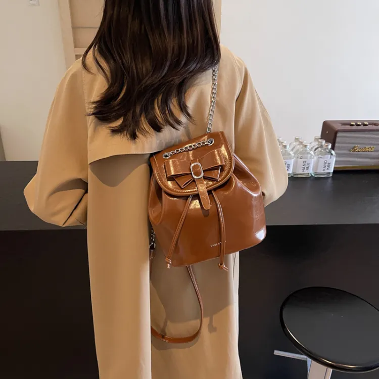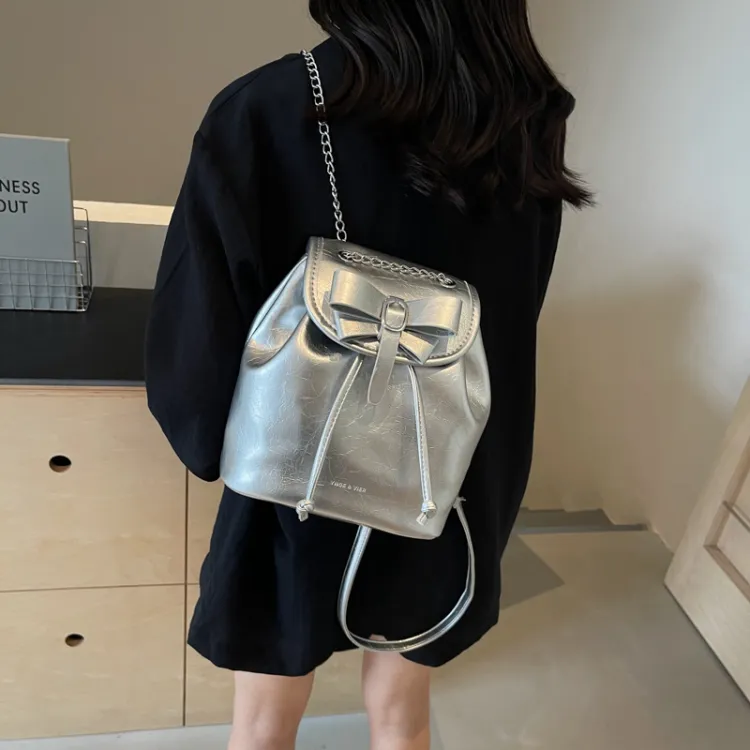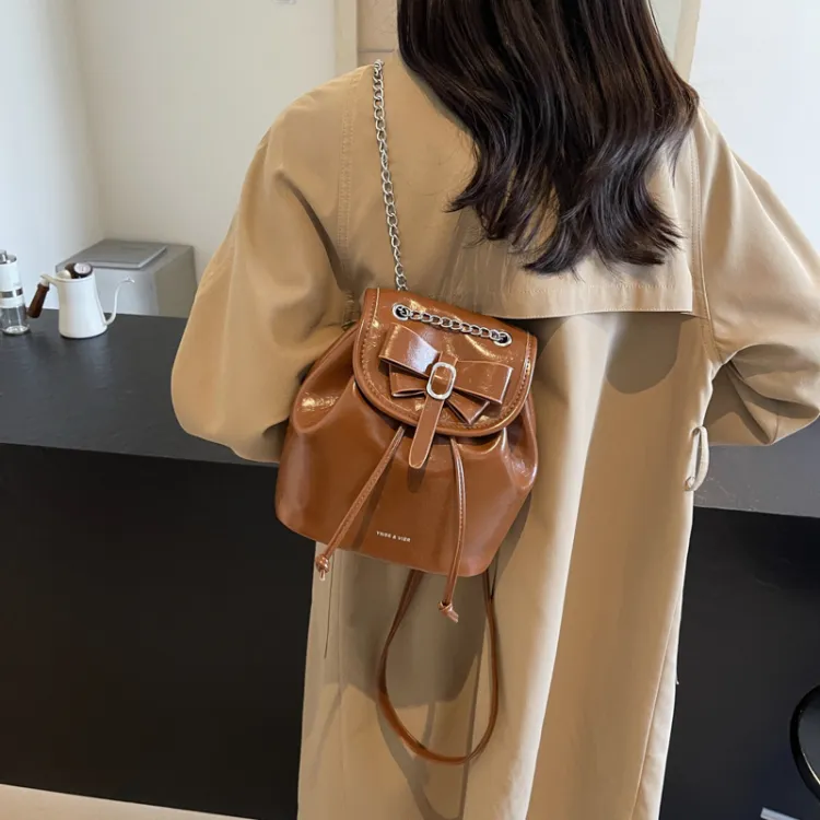 Meow in The Grass PU 백팩 레귤러 여성 블랙/실버/브라운/버건디 - POIZON