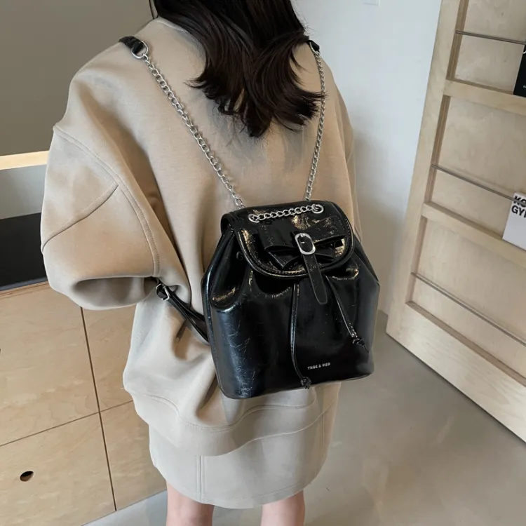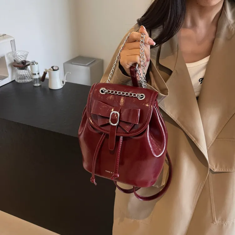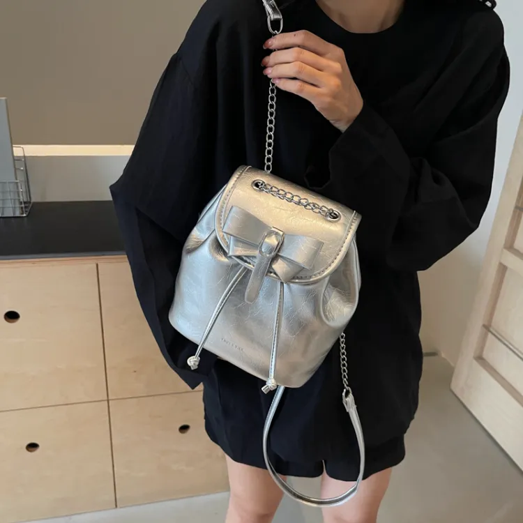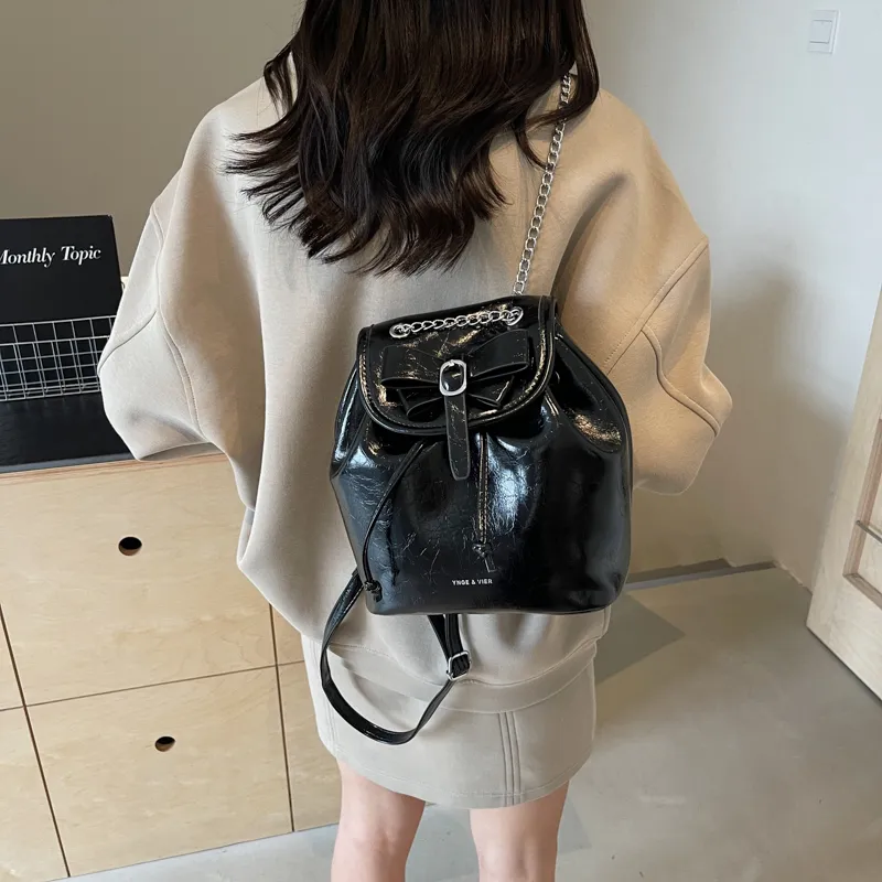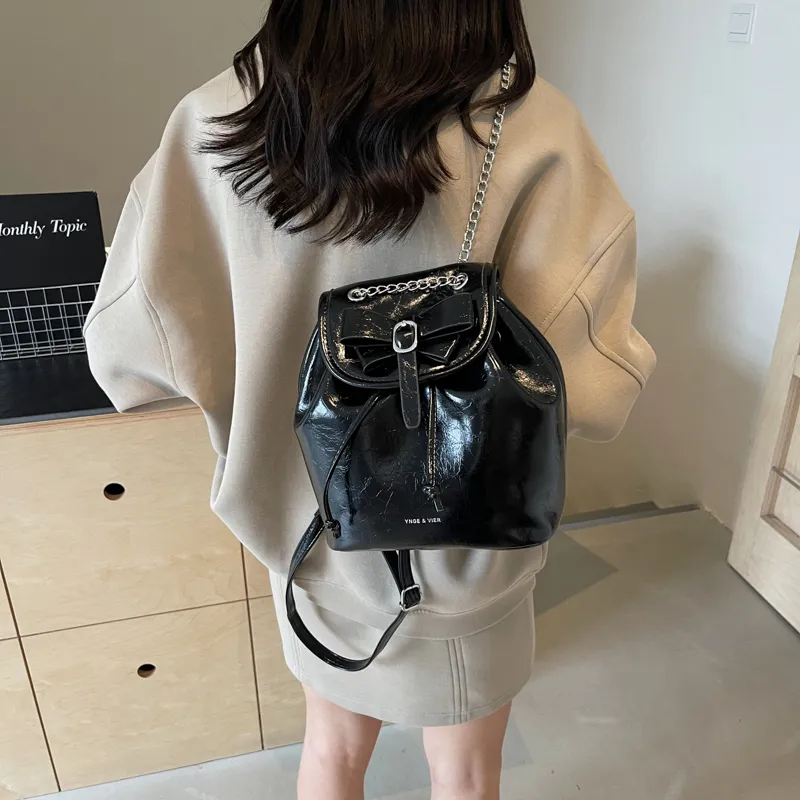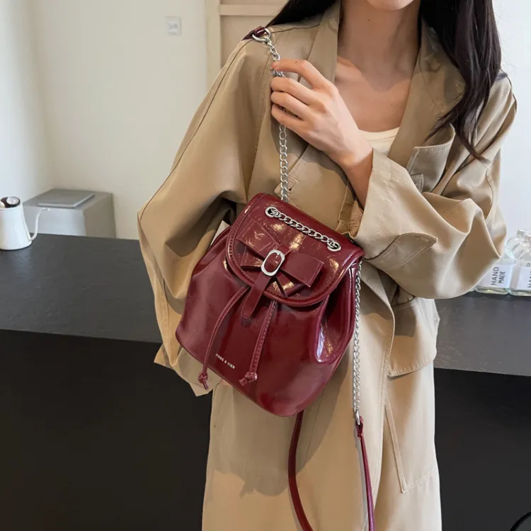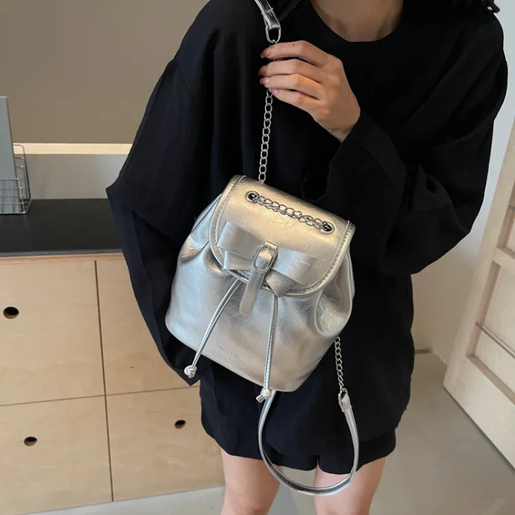 Meow in The Grass PU 백팩 레귤러 여성 블랙/실버/브라운/버건디 - POIZON