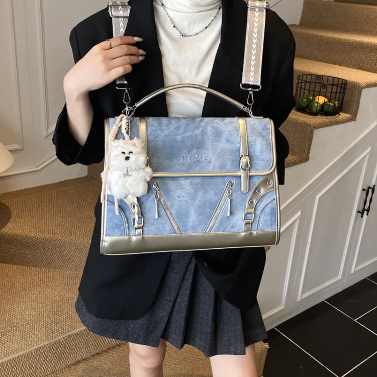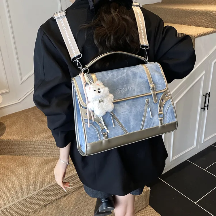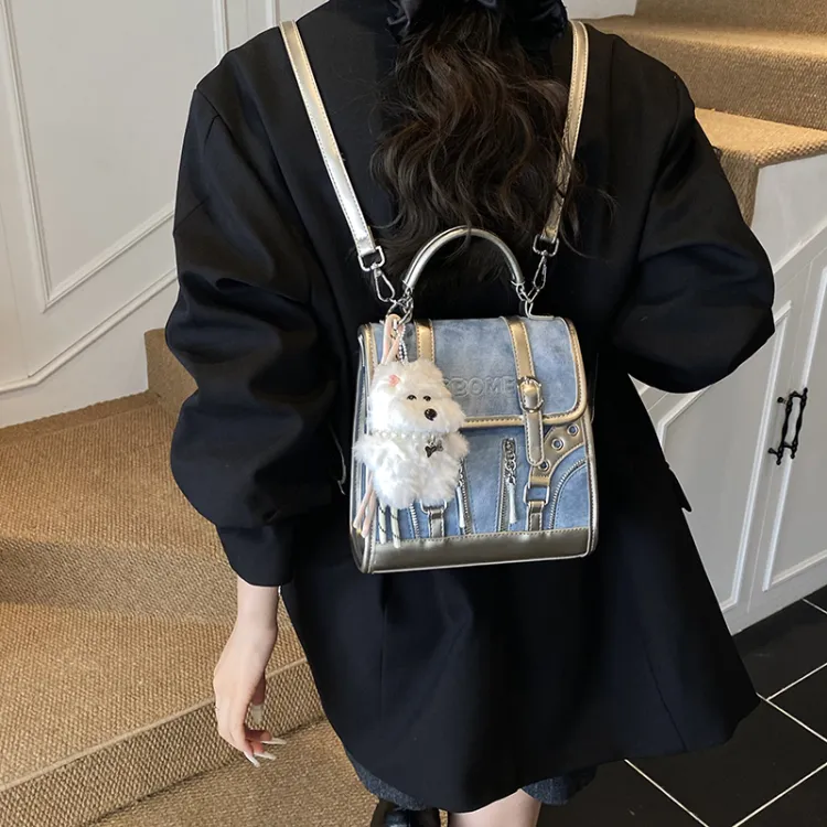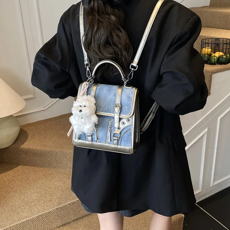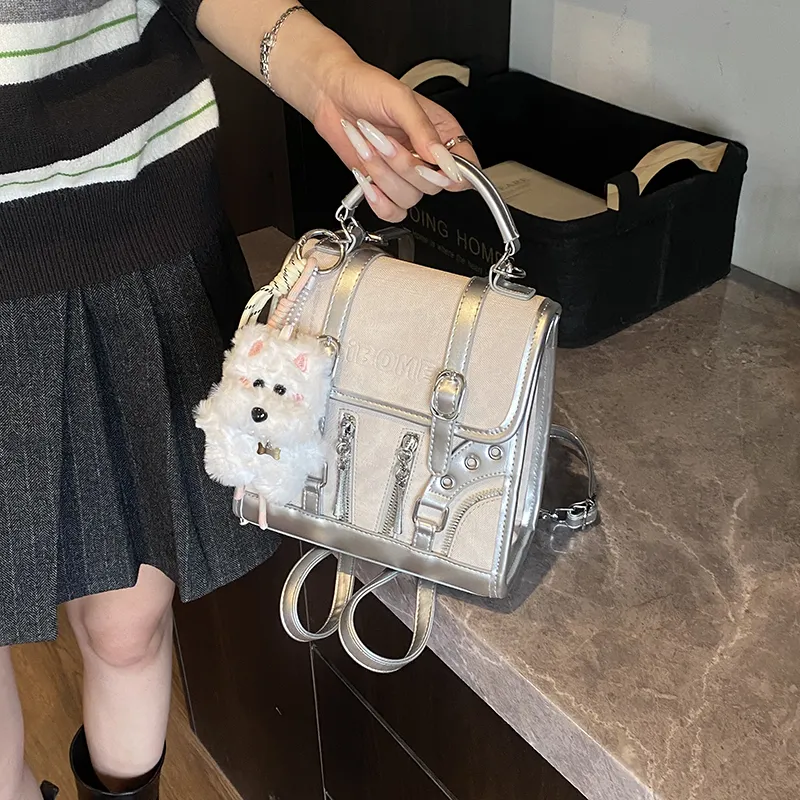 Meow in The Grass PU 백팩 레귤러 여성 화이트/실버/블랙/블루 - POIZON