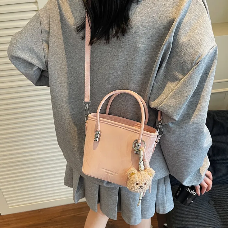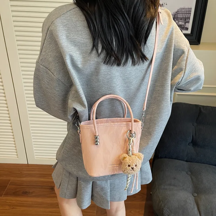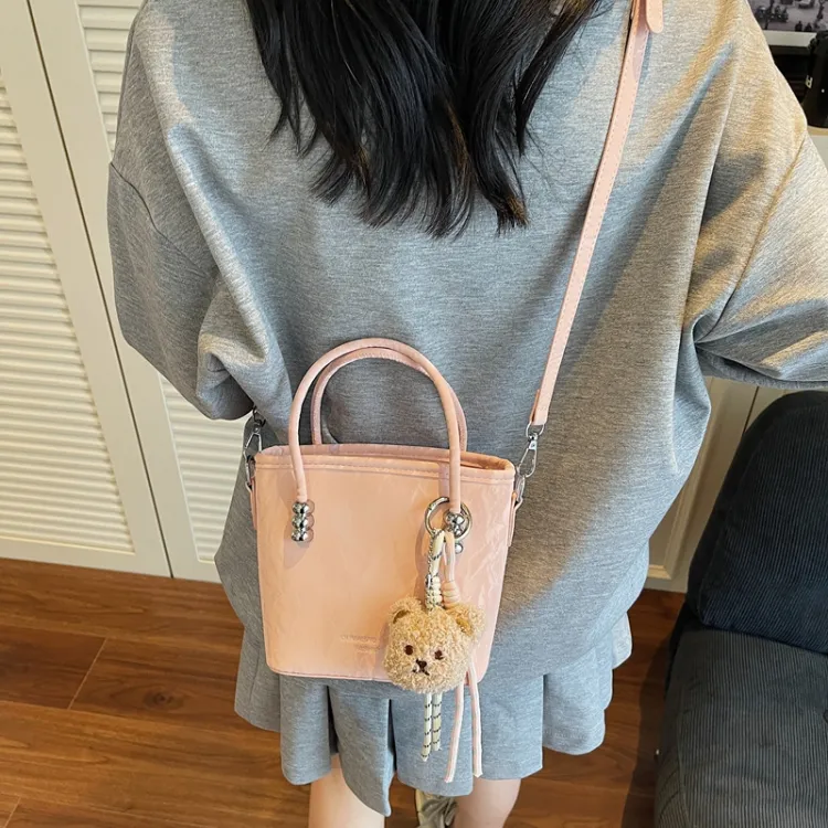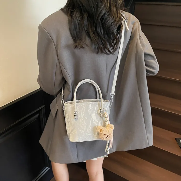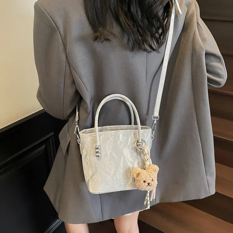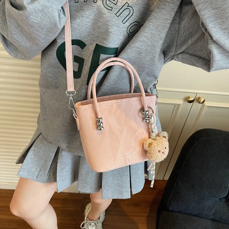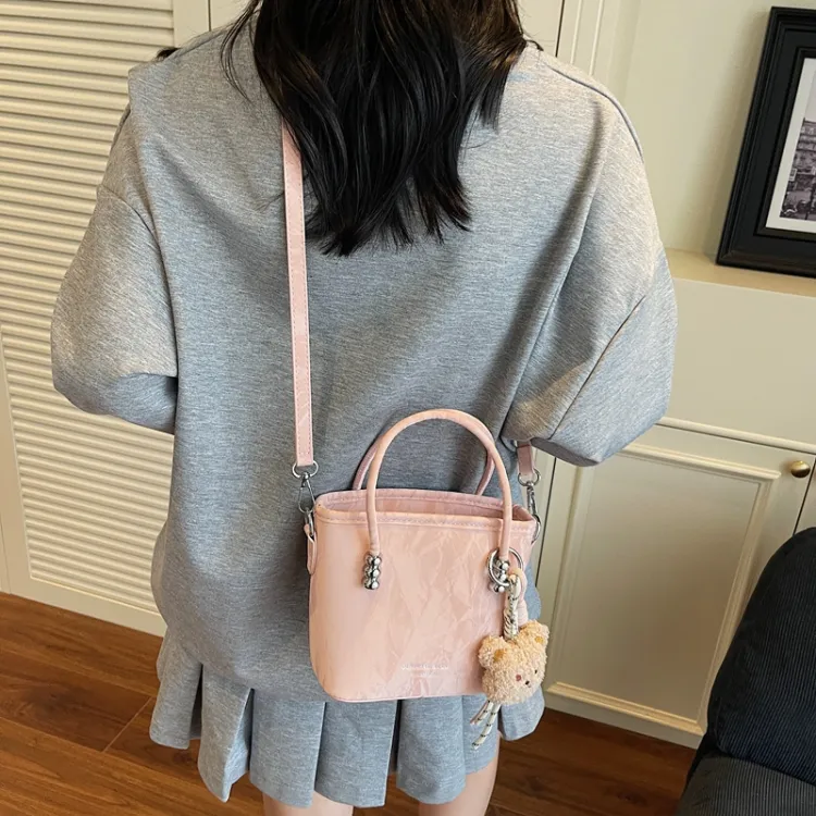 Meow in The Grass PU 숄더백 핸드백 레귤러 여성 핑크/블랙/아이보리/실버 - POIZON